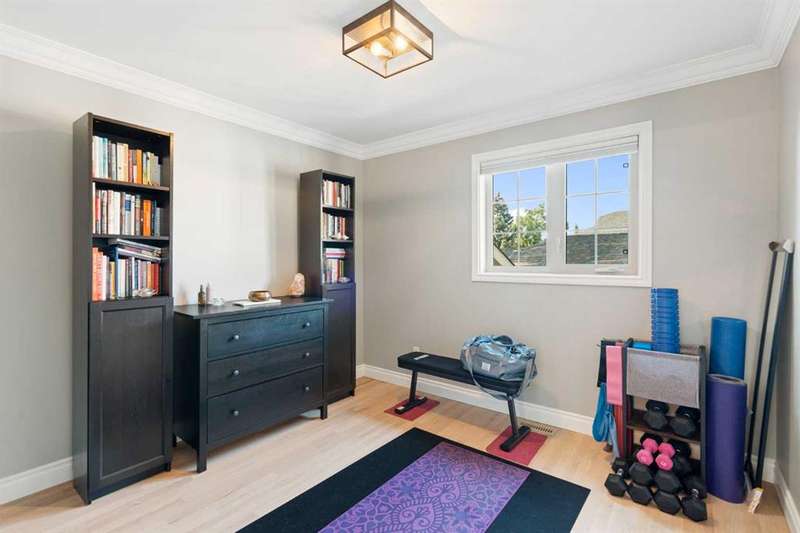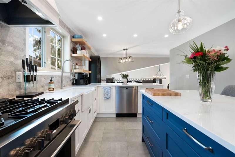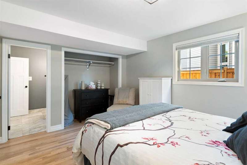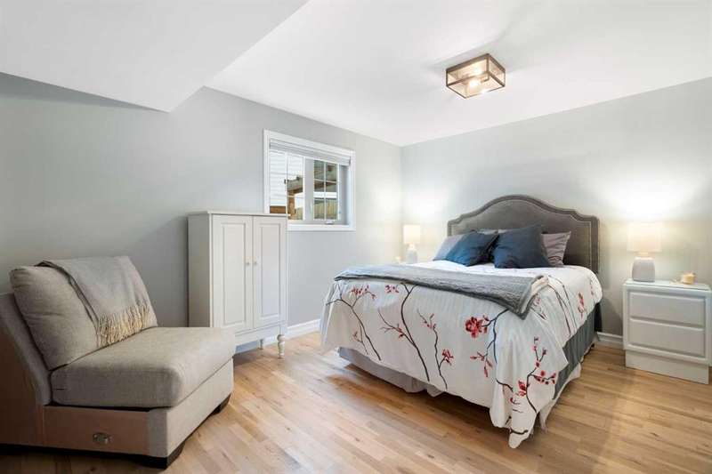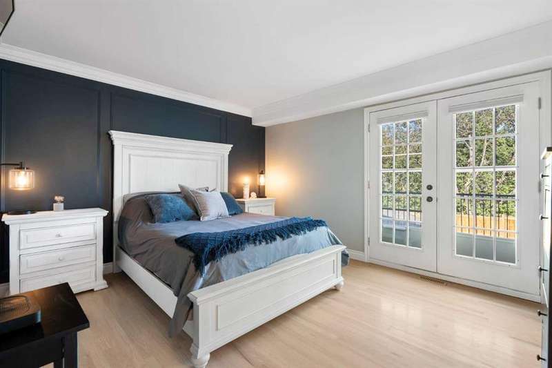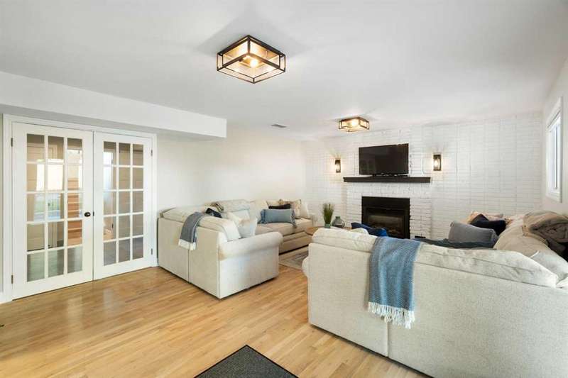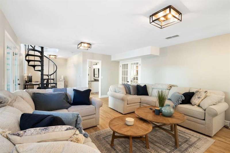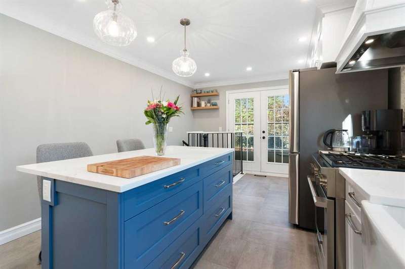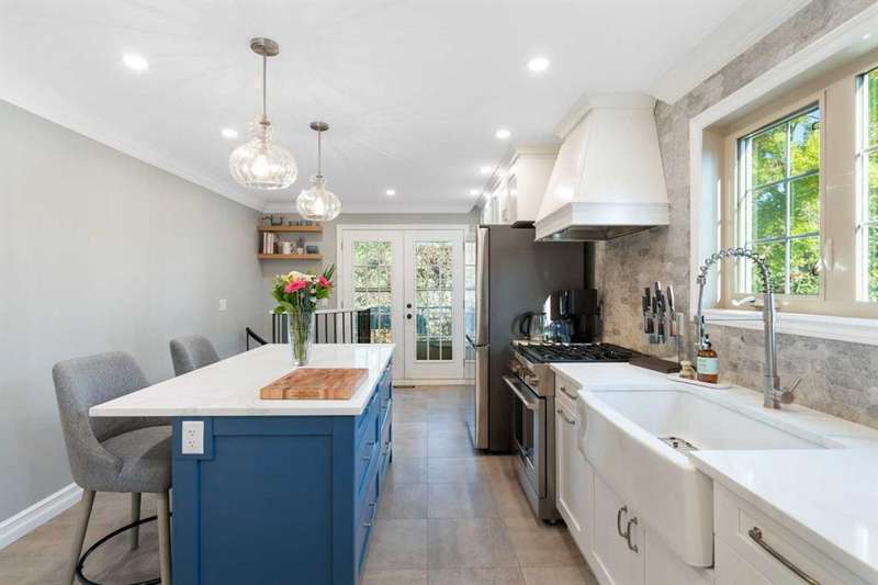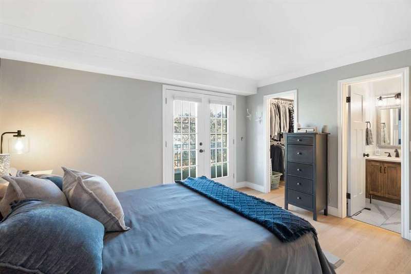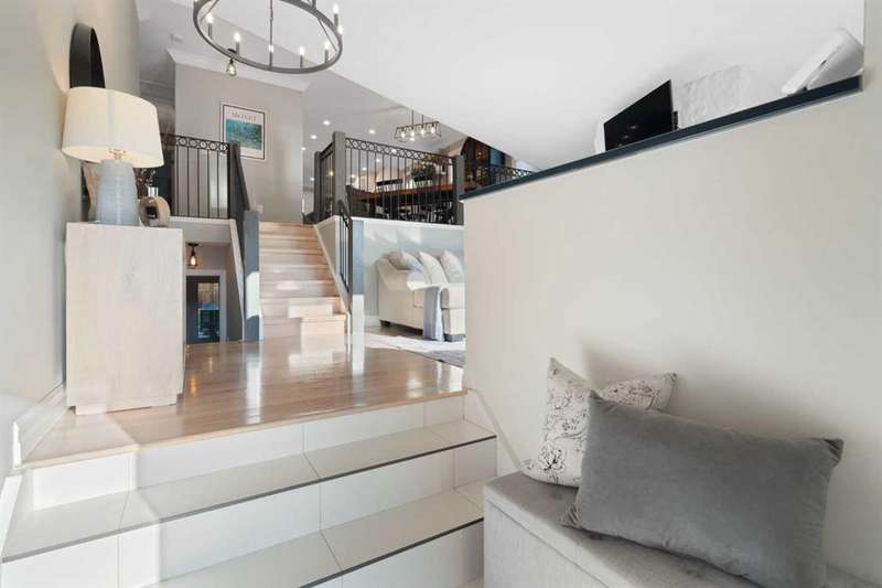 ***PLEASE CHECK OUT THE 3D WALKTHROUGH*** Welcome to this stunning and unique 4 bedroom, 3 bathroom home, perfectly situated in a quiet Scenic Acres cul-de-sac. Fully renovated in 2024, this property blends modern luxury with one-of-a-kind character. Inside, you’ll find real red oak hardwood, custom crown moulding, knockdown ceilings, and custom blinds. The striking spiral staircase from the historic Burns Meat Packing Plant, paired with a custom iron railing from a downtown Calgary landmark, makes this home truly unforgettable. The gourmet kitchen is a chef’s dream with a Fulgor gas stove, built-in wine fridge, custom cabinetry, and imported Spanish tile. French doors off both the kitchen and primary suite open onto a massive deck, perfect for entertaining. Two custom gas fireplaces add warmth and elegance throughout. The walkout lower level extends your living space and opens directly onto the stunningly landscaped backyard, complete with extensive stamped concrete, lush blooming gardens, a dog run, and a large custom-built shed. A standout feature is the oversized garage with 14-foot ceilings and mezzanine, offering endless storage or workshop space. With thoughtful upgrades like an updated central vacuum system and fully custom finishes, this home is a rare find in Scenic Acres.