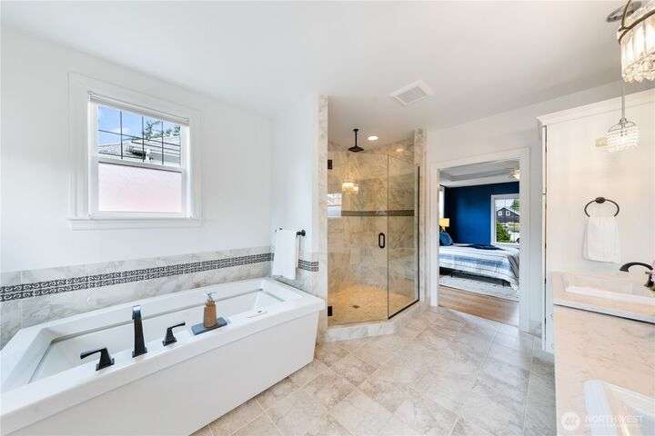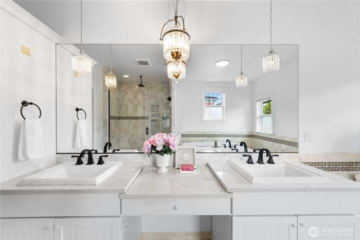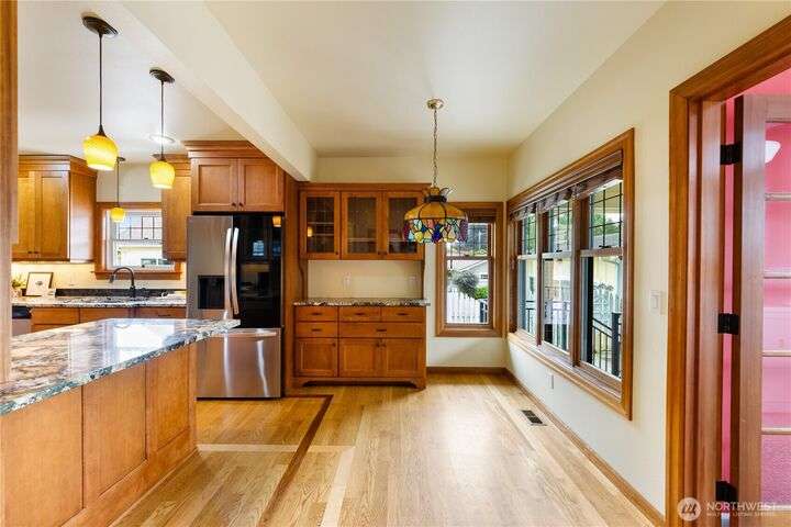 Tudor style home located in Old Town Anacortes. Built in 1932, this beautiful home is in the perfect neighborhood. You will love this house and location. Short stroll to shopping, restaurants, Causland Park or to the Guemes Channel to enjoy the beach or just watch the ships go by. Home offers a new addition of a library & Primary suite & huge walk-in closet, jaw dropping bathroom, soaking tub, walk-in shower & quality finishes. Kitchen has new granite, cabinets and hardwood floors. Upstairs boasts spacious room for a crafts room or playroom with lots of natural light plus full bath & 2 bedrooms.Top-Down bottom up shades. Basement is a dream with lots of space for storage or extra rooms. Newer single car detached garage off alley.
