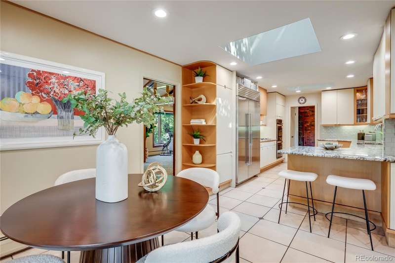 Welcome to 9649 E Powers Drive Where Character, Space & Nature Converge!Nestled in a peaceful cul-de-sac in the heart of Greenwood Village, this distinctive 5-bed, 5-bath home offers an extraordinary blend of privacy, space, and access to the best of Colorado living. Set on a generous lot backing to protected Greenwood Village open space and surrounded by a designated bird sanctuary, this home is a rare gem in an unbeatable location within the main corridor of the Denver Tech Center.Step inside to discover vaulted ceilings, clerestory windows, and over 3,600 square feet above grade (plus a 1080 square foot finished basement), creating light-filled, well-separated living spaces perfect for both quiet moments and lively gatherings. The homes thoughtful layout includes multiple outdoor living areas, including a deck off the primary suite, a large covered side patio, and a charming style courtyard entryideal for morning coffee or evening relaxation under the trees.Nature lovers will revel in the setting: walking distance to Cherry Creek State Park, Tommy Davis Park, Orchard Hills Park, Silo Park, and Cherry Creek Schools. Just steps from your front door lies access to an extensive interwoven trail system with tennis courts, pickleball, horse stables, and more. The neighborhoods rural feel within an urban corridor offers the best of both worldstranquility without sacrificing convenience.Additional features include an oversized 3-car side-load garage, circular front drive and mature landscaping. While the home invites your personal updates, it has been lovingly maintained by the same owners for over 40 years and is bursting with character, charm, and potentialready to welcome its next chapter.Dont miss this exceptional opportunity to own a one-of-a-kind home in one of Greenwood Villages most cherished enclaves!