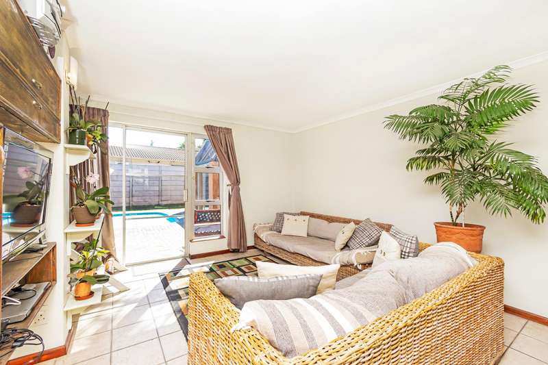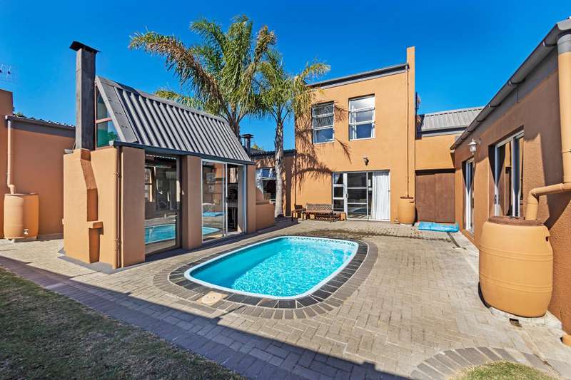 A welcoming five-bedroom family home with a 54sqm flatlet in the heart of the popular Sonstraal Heights. DUAL LIVING AT ITS BEST! This beautiful home has an easy flow. The kitchen has a breakfast nook and a large walk-in pantry cupboard. There is a separate scullery and a washroom. The lounge, filled with natural light, leads to a sparkling pool and an outdoor entertainment room. The entertainment room boasts a built-in braai, pizza oven and air conditioner. The home offers five spacious bedrooms, three of which have their own en suite bathrooms. The other two bedrooms share a bathroom with a separate toilet. Apart from the three bedrooms on the lower level, set slightly apart you will find another spacious bedroom/guest suite with a full en suite bathroom. On the upper level is a spacious bedroom with full en suite bathroom and a sliding door leading out onto a large deck with stunning views of Table Mountain and the rolling hills of Durbanville. The flatlet has its own entrance and a complete kitchen with an under counter oven, hob and an open plan living / dining area. A separate bedroom and extra-large bathroom. The flat also offers the perfect work from home space or the potential to be used as a rental income generator. The garage is extra spacious. The garage can accommodate two large vehicles and a trailer or three smaller vehicles. From the garage glass sliding doors open up to the pool area. EXTRAS: Outside storeroom. Two wendy houses (+- 10m?? and 12m??). Excellent security with electric fence and perimeter gate. House = 310m?? A one-bedroom flat of 54m??, A separate outdoor braai room of 13.5m?? Extra-large double garage = 50m??