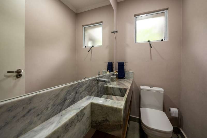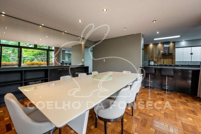Casa com portaria eletrônica e guarita monitorizada. Possui arquitetura contemporânea e reformada. Dispõe de living amplo e iluminado para vários ambientes, home office e home theater, ampla cozinha, academia, raia e ofurô aquecidas. Conta com amplo espaço gourmet com churrasqueira, quadra de beach tennis e seis vagas de garagem. Na área íntima há cinco suítes, sendo a máster com closet e banheira de hidromassagem.