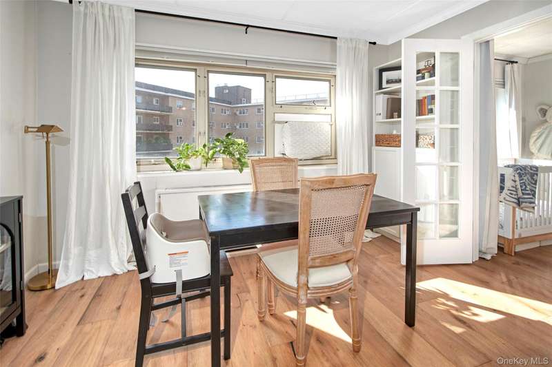 Welcome to Newport Towers, centrally located in downtown Harrison! Move right into this bright and spacious Junior 4! Enjoy the afternoon sun on this 4th floor delight that overlooks the courtyard. This unit offers a spacious living area with modern kitchen, bath and stainless steel appliances. The beauty is in the details with wide plank oak wood floors, custom closets and french doors that open to a flex space that can be used as an office, dining area or second bedroom. This building is well maintained with a pool, recreation room, laundry on every floor and 2 unassigned parking spaces. Located steps from the Metro North Train Station, restaurants, shops and town.