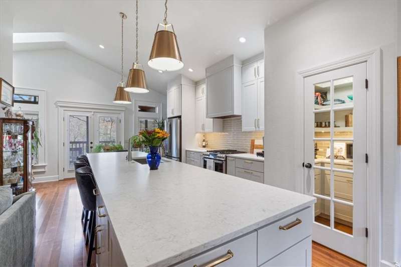 Imagine a home perfectly placed to take advantage of the sunrise and sunset from the 41 foot screened porch! This lakefront oasis built in 2010 is the definition of tranquility! The professionally landscaped front yard leads you to this impeccable Lake Ann home. The current owners facilitated a complete kitchen remodel, from the large island, to the quartz countertops, new lighting, to all new cabinetry. Stainless appliances, including a gas stove and a walk in pantry. The kitchen area is open to the living room and features a newly redesigned fireplace with stone surround. Separate formal dining space with built in cabinetry. Off the kitchen is a flex space that could be used for future access stairs to take advantage of the lower level unfinished space. The wood flooring extends thru the home into the primary suite. Two guest bedrooms, one with a private deck. Lower deck with steps to the water. Stone seawall. New interior paint. Updated lighting. An exceptional lakefront home!