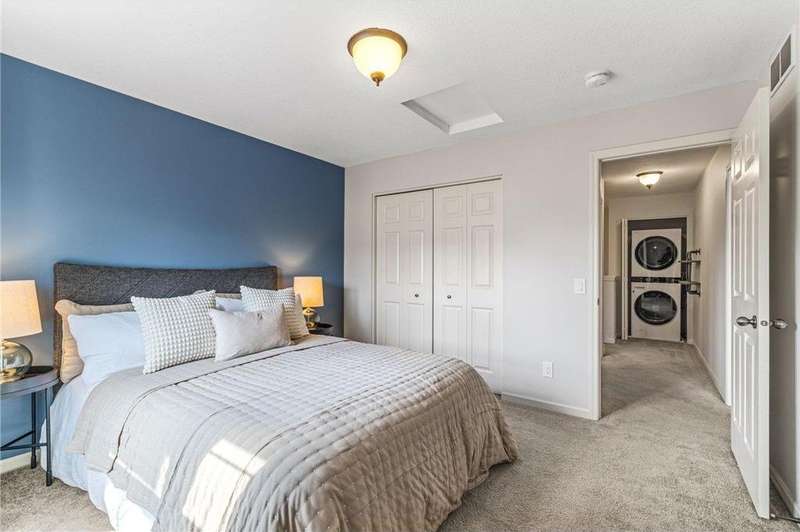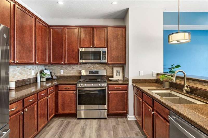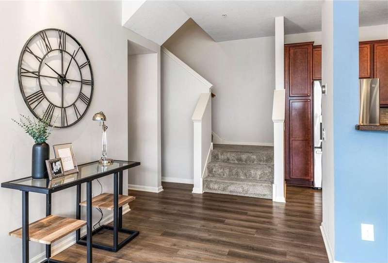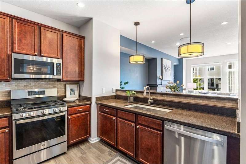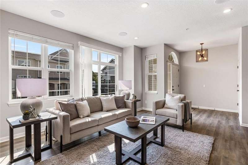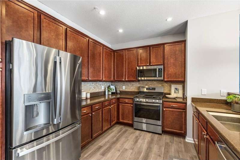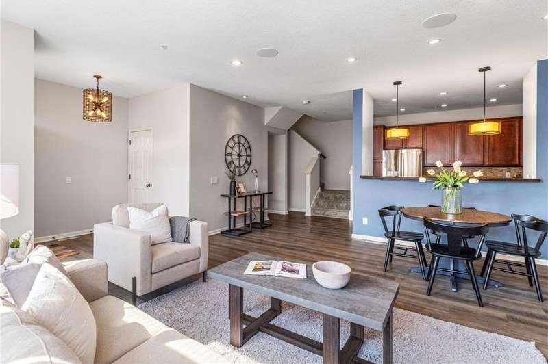 Welcome to easy living in The Bridges of Arbor Lakes—where comfort meets style and everything you need is just around the corner. This beautifully updated townhome offers two spacious bedrooms and three bathrooms, with an open-concept main level that’s filled with natural light and perfect for everyday living or entertaining. Start your mornings at the breakfast bar or gather with friends in the informal dining area where the granite countertops, cherry cabinetry, and brand-new stainless steel appliances make the kitchen a joy to cook in. Just off the main living area, step onto the large maintenance-free deck to soak up the sun or enjoy a quiet evening inside by the cozy fireplace. Upstairs, the sun-filled primary suite feels like a personal retreat with a spa-like bath, separate tiled shower, soaking tub, walk-in closet, and convenient laundry just steps away. East-facing windows and a private balcony door let the morning light pour in, creating a warm and peaceful start to your day. The attached two-stall tuck-under garage keeps you out of the cold in winter, while the neighborhood offers walking trails, pickleball courts, nearby parks, and shopping and dining just minutes away. With thoughtful updates including a newer roof (2020), new water softener, washer and dryer, COREtec LVP flooring (2024), new furnace (2025), and fresh paint throughout—this home is truly move-in ready. Come see why this one feels just right.
