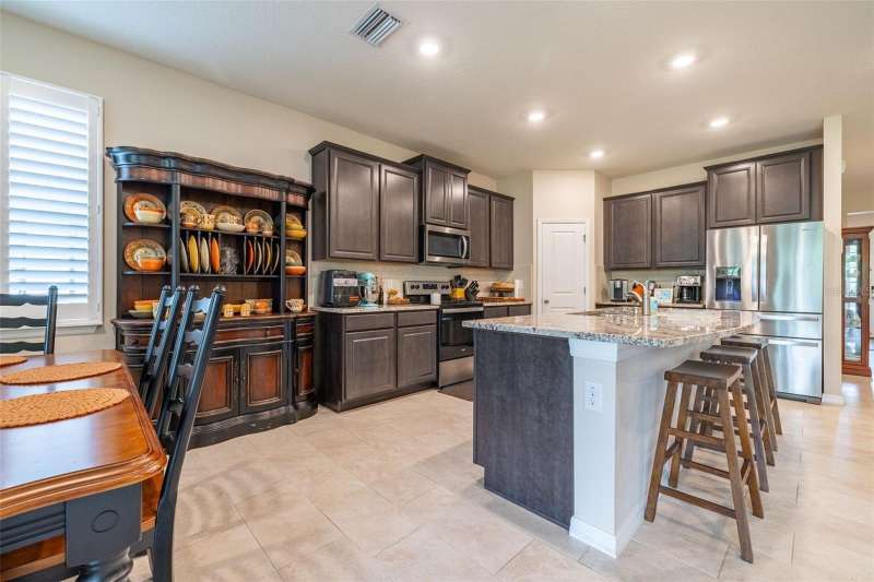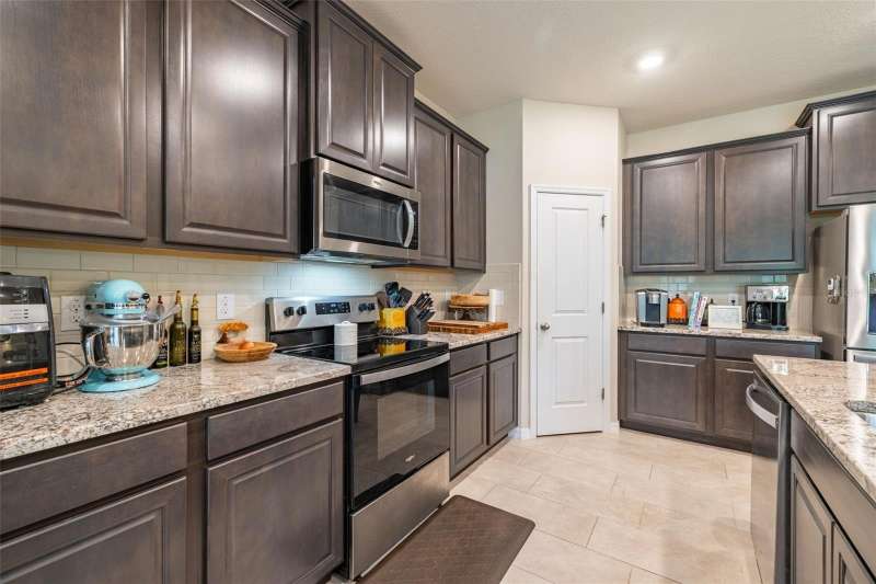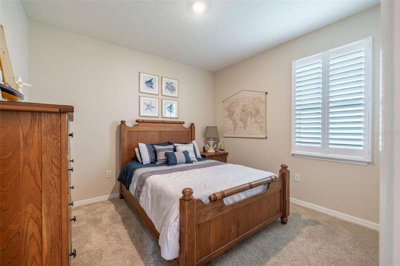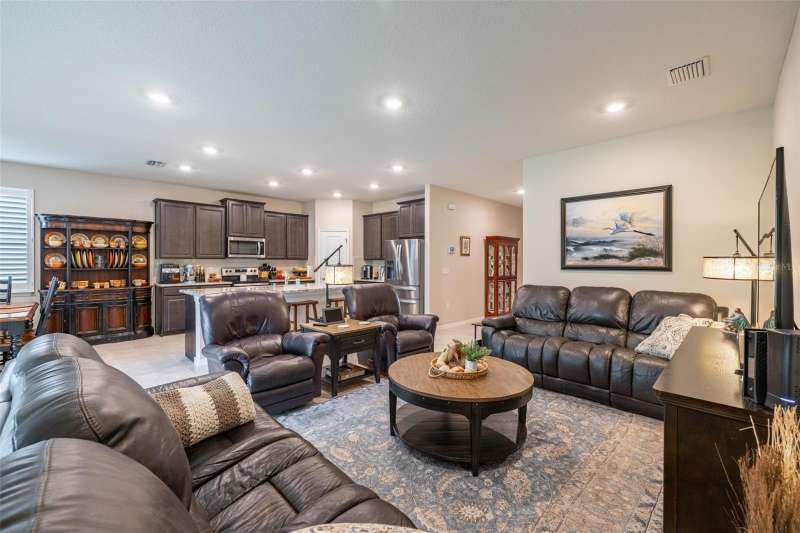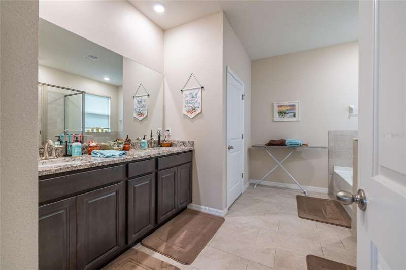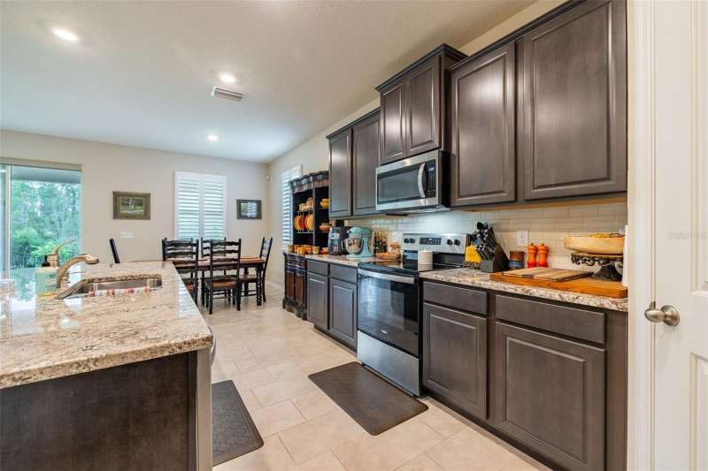 Welcome to this beautiful home in highly sought-after Odessa! The Preserve in Pasco County, Florida is where you will find this gently lived in 4 bedroom, 2 and a half bath, 2-car garage SMART home. Enjoy the ample space within this expertly designed split bedroom plan. The primary bedroom is separate from the 2 front bedrooms (with a full bath), and bedroom 4 (which could be used as an office) is convenient to the hallway half bath, laundry room, and great room. The primary bedroom boasts a decorative tray ceiling, upgraded canned lighting, double walk-in closets, and a luxurious ensuite with granite counters, double sinks, a garden tub for relaxing and a generous sized tile shower. Windows have highly desirable plantation shutters. The kitchen features stainless steel appliances, granite counters, a large island with available seating space, generous cabinetry, and a walk-in pantry. Upgraded and neutral 12”x 24” tile completes the main living area floors. The triple sliding door to the outdoor space has an indoor electric blind for the utmost privacy. The backyard is fully fenced with a privacy PVC fence and wrought iron look fencing near the private, deep conservation view. Birders may enjoy seeing and hearing ospreys, cardinals, hawks, and wrens. Your dog (or dog-to-be?) will enjoy fresh air and room to roam outside in your fully fenced backyard. Wait until you see the neighborhood resort style pool and the lap pool, fitness center, playground, dog park, soccer field and basketball court. It gets better! Publix supermarket is located at the front of this neighborhood, and in addition, area restaurants, Advent Hospital, the Suncoast Trail (biking, walking, running), and the Suncoast Expressway, which is a direct route to Tampa International Airport. Enjoy the Preserve life!