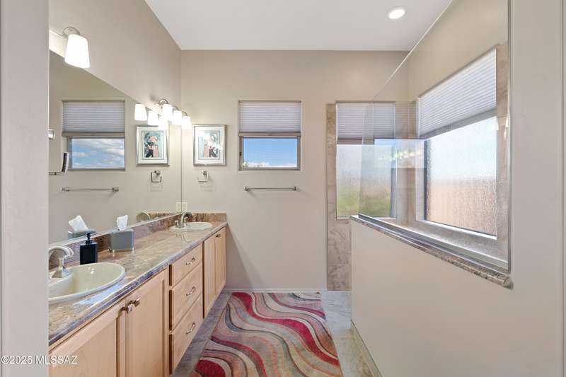 Views! Views! Views! This home in the small enclave of Rancho Vistoso, called Vista Mirabella rests against the 27 mile Wash and offers wonderful views of the Tortolita Mountain Range off the back and views of the Catalina Mountains from the front. This wonderful location is close to Oro Valley Hospital, shopping, restaurants, the OV bike loop and the wildlife underpass. Home features 4 bed/2 bath with formal living/dining, plus amazing upgraded kitchen open to family room. Light and bright kitchen features maple cabinets, large island with sit up bar, granite counters, granite composite sink, stainless steel appliances, custom tile backsplash and tons of storage space. Family room with gas fireplace, Italian porcelain tile flooring and large window/slider bringing the views indoors.