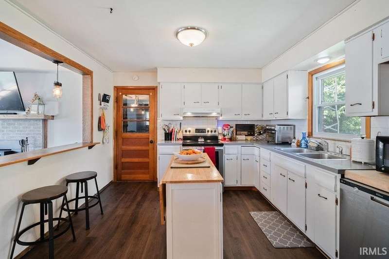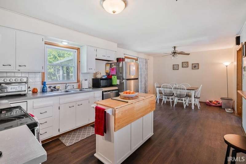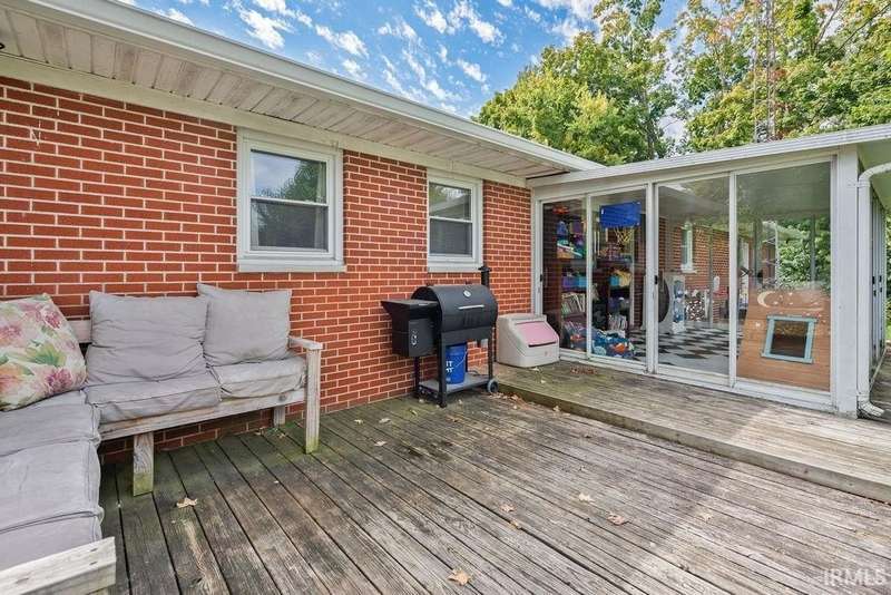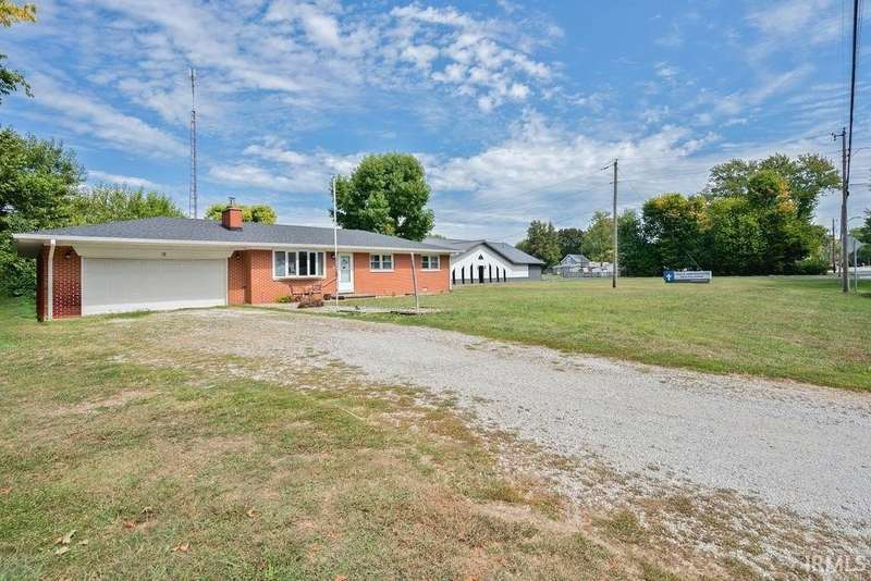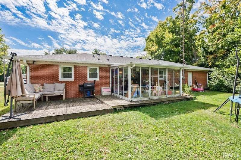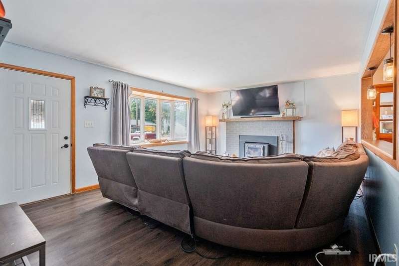 Discover this all-brick 3-bedroom, 2-bathroom home in Greentown, offering plenty of space on 2 lots! The kitchen features a breakfast bar that overlooks the living room—giving the space a modern, open feel, complete with a wood-burning fireplace. A split-bedroom layout gives the primary suite its own private en-suite bath, while both bathrooms feature step-in showers for accessibility. Enjoy the outdoors from your deck or the light-filled sunroom/enclosed patio—offering extra space. The home also includes a 2 car attached garage, a play set, a large back yard with a fire pit, a 1 year old roof, 1 year old HVAC system, and all new flooring! A must see!