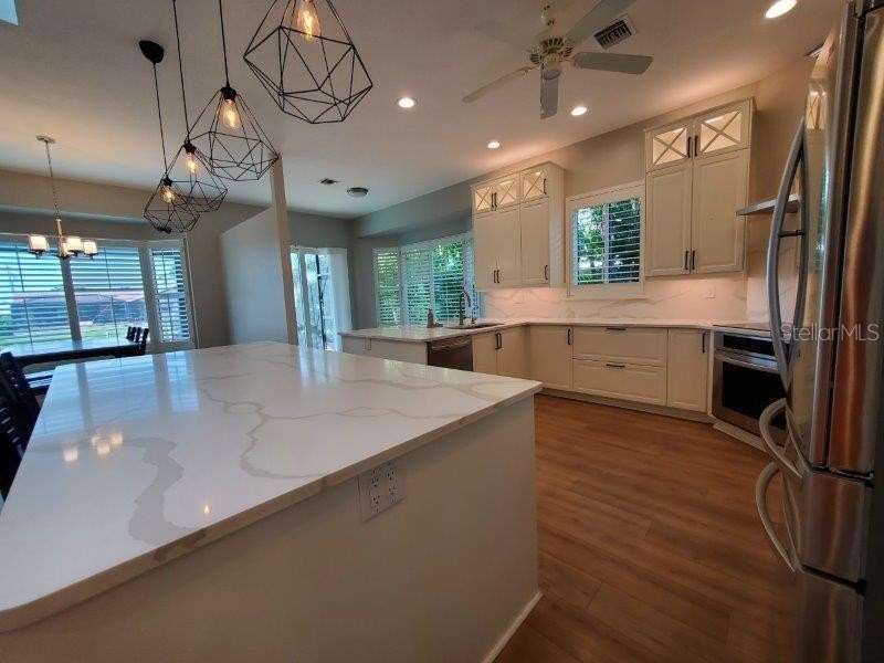 Annual beautiful 3/2/2 PGI WATERFRONT POOL rental. $3200 rent and $3000 sec dep. This stunning waterfront rental home is AVAILABLE NOW. This decorator's dream home has every detail to the next level. This rental features contemporary large kitchen with upscale stainless appliances, extra counter space and HUGE island, newer efficient mechanicals, beautiful fresh paint, NO CARPET, hurricane windows and patio doors, large sparkling pool with new pavered patio and cover lanai with wood ceiling, large primary suite with gorgeous walk in shower, dual vanities, a plethora of cabinets and closets, every detail is mindful for your whole house entertaining, light exposure, walk in closets with shelving, ceiling fans, laundry room, epoxy garage floor, guest suite, office, and 2nd full gorgeous bath with shower. 10k BOAT LIFT with dock. Lawn and Pool included. Punta Gorda Isles (aka PGI or the ‘Isles’) where you can enjoy the shores of Charlotte Harbor with its spectacular sunset views, incredible boating, sailing and fishing, a fabulous Downtown quaint Punta Gorda with its’ variety of quality nationally recognized restaurants and boutiques, shopping, several golf courses, the Pickle Plex and easy access to US-41 and I-75. It's home to many events including a Saturday Farmer's Market, FISHERMAN’S VILLAGE, SUNSEEKERS RESORT, wine walks, LIVE MUSIC, art fairs, boat tours, convenience to the Punta Gorda airport (one of Allegiant Airlines tropical destinations) and just 30 mins to Ft Myers airport, 18 miles of bike and pedestrian trails connecting this fabulous city.