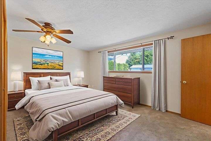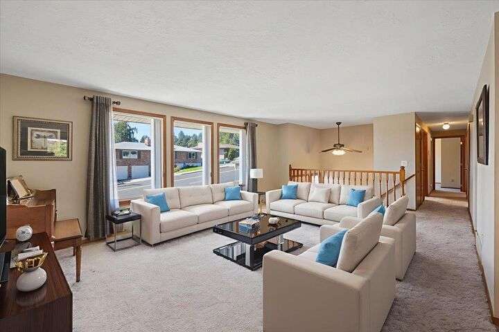 First time on the market! Welcome to this beautifully maintained 4-bedroom, 3-bath split-level home offers 2,785 sq ft of comfort and charm. Enjoy stunning city views from two large decks—one for sunrises, one for sunsets. Located near hiking trails, kayaking spots, and the Spokane River, with easy access to shopping, restaurants, and a sports complex. The home features new kitchen flooring (2022), two cozy gas fireplaces, and a nicely landscaped private backyard with a shed. A full sprinkler system front and back keeps the yard lush. The spacious 2-car garage includes outside access and ample storage. This peaceful retreat offers both convenience and serenity.