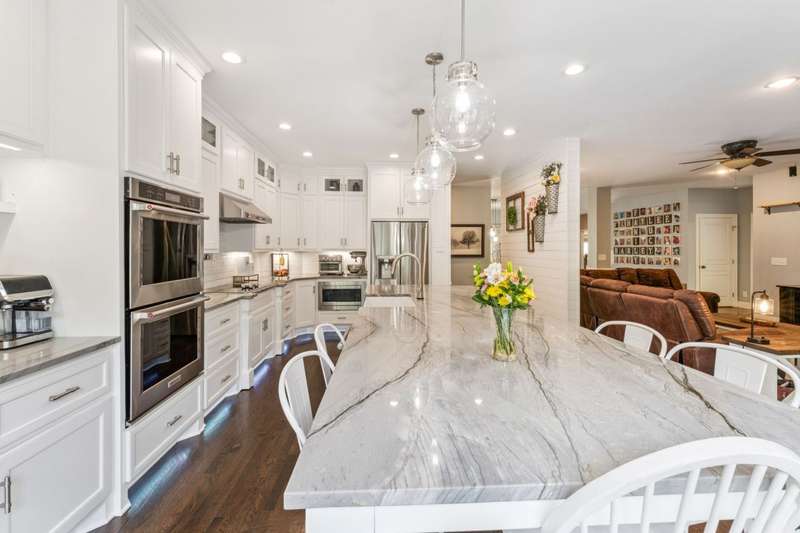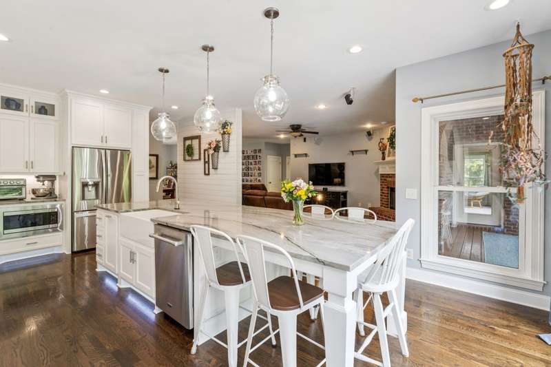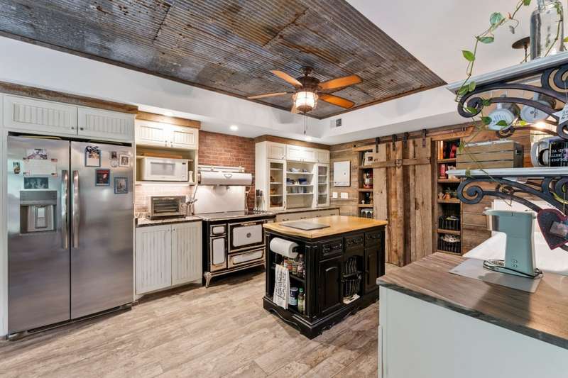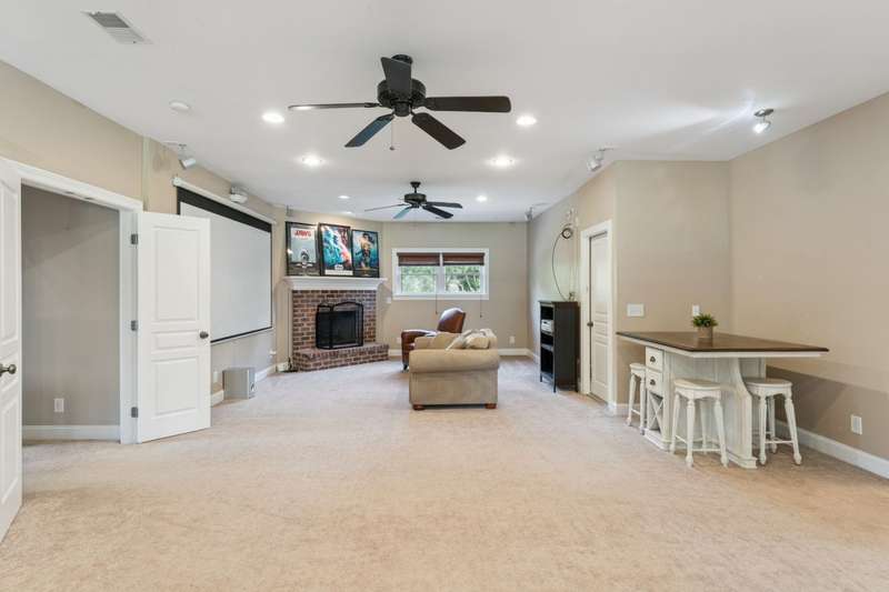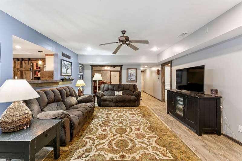 THIS IS A BIG HOUSE!!! This multigenerational home has 4 BR and offers 2 other versatile flex rooms with walk-in closets that can be customized to fit your unique needs. These additional spaces provide endless possibilities.. The main story has a large, newly renovated gourmet kitchen showcasing a 12-foot quartzite (top tier quality) island. Picture frame windows and a screen room overlook Corps of Engineers property, leading to the creek/lake (where you can kayak or fish), which provides even more appeal to this private1-acre lot. Seller has approval from the Corp of Engineers to mow to Creek. The fully finished basement resembles a second house containing a kitchen, sleeping quarters, one bathroom, a living room, a dining room, a garage, and a laundry room. The pool, hot tub, deck, parking space, and private outdoor area make this home perfect for hosting. Parking is easy in the circular driveway with a convenient turnaround that provides easy access to the 2-car garage. Additionally, there is another garage bay for your toys/tools that is rear facing (No driveway access). The roof is 2 years old. Two of the HVAC Systems are also only 2 years old. Also, LOTSSSS of storage space!!! COME CHECK IT OUT TODAY!