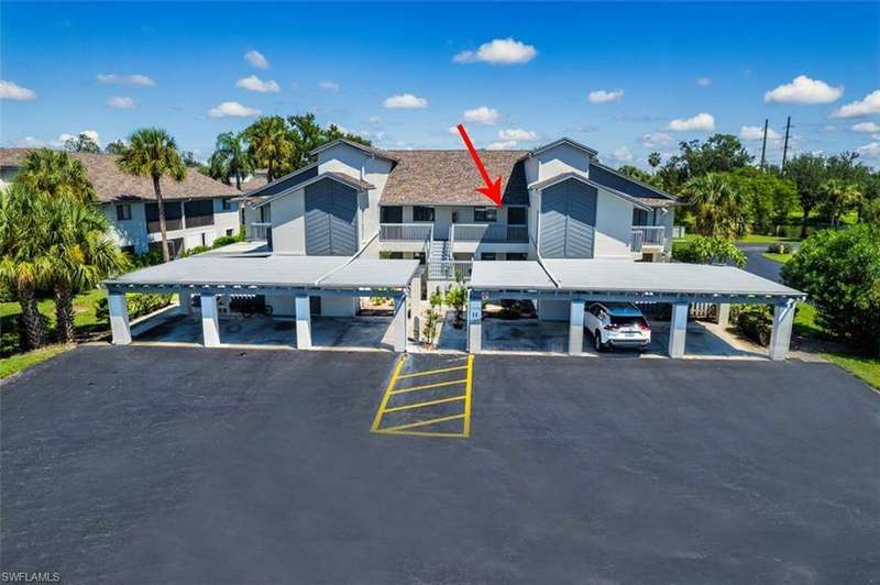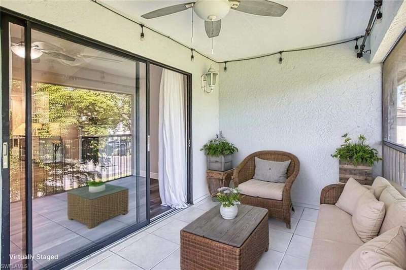 This LUXURIOUS PENTHOUSE condo awaits you! Beautifully UPDATED END-UNIT, flooded with natural light and treetop views, is sure to impress any buyer. NO SPECIAL ASSESSMENTS TO WORRY ABOUT! This stunning condo offers 2 bedrooms and 2 bathrooms on a SPLIT FLOOR PLAN spanning nearly 1,100sqft, laundry in residence with W/D included, and is perfect for those seeking a modern and convenient lifestyle. The SPACIOUS living area features 30' DOUBLE-INSLATED CEILINGS, a cozy FIREPLACE, and neutral LVT & tile flooring throughout--NO CARPET! The EXPANDED & OPENED KITCHEN is a chef's dream with QUARTZITE counters, an island, STAINLESS STEEL appliances, and ample storage in WHITE SHAKER CABINETS. NEW A/C & NEW ELECTRICAL PANEL offer comfort and peace of mind. Enjoy the convenience of an EXTRA STORAGE ROOM and CARPORT, providing plenty of room for all your belongings. Take advantage of this PET-FRIENDLY community's amenities: pool, spa, tennis, pickleball, shuffleboard, and even a vehicle wash station! Newport Glen is ideally located near ample shopping, dining, and entertainment options, making it easy to enjoy all that the area has to offer. Plus, with a short drive to RSW International Airport and SWFL's white-sand BEACHES, you'll have easy access to travel and leisure activities. Don't miss out on this incredible opportunity to own this rated "BEST VALUE BUY" in Newport Glen. Whether you're looking for a permanent residence, vacation getaway, or investment opportunity-- this condo has everything you need for a comfortable and stylish living experience!