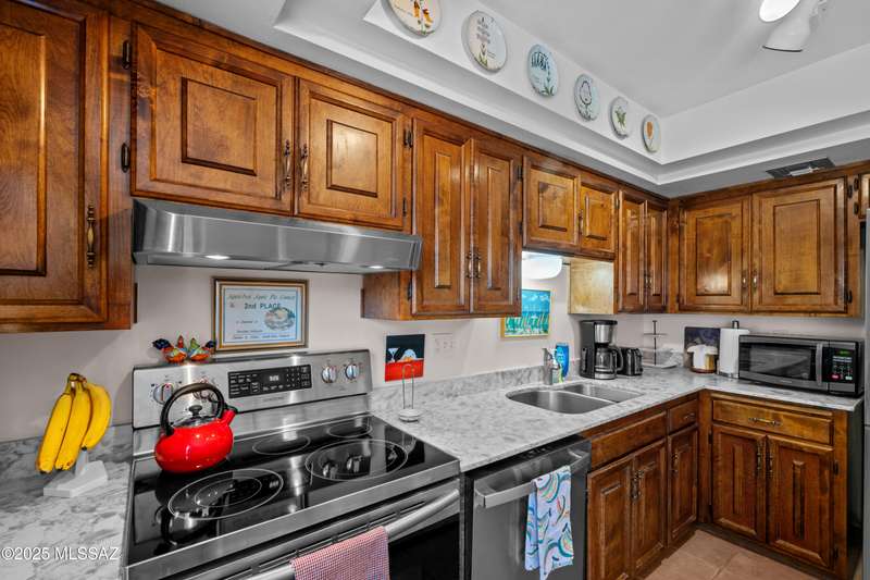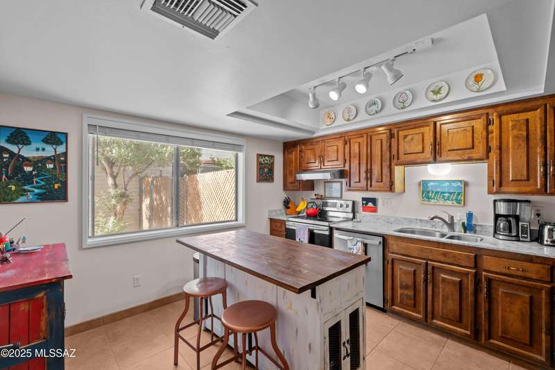 This stylish 1022 sq. ft. townhouse offers the perfect blend of comfort and convenience. Featuring 2 bedrooms and 2 bathrooms, it's an ideal home for professionals, students, or anyone seeking a low-maintenance lifestyle. Inside, you'll discover a thoughtfully designed floor plan that maximizes every square foot, including a water softener system for better-quality water throughout the home. Step outside to your quaint covered patio overlooking a charming yard with mature landscaping, perfect for morning coffee or evening relaxation. The retractable screens add to the outside living. The solid masonry construction provides durability and excellent insulation. Outside, enjoy the community pool perfect for those hot Arizona days. situated in a peaceful cul-de-sac this townhouse combines