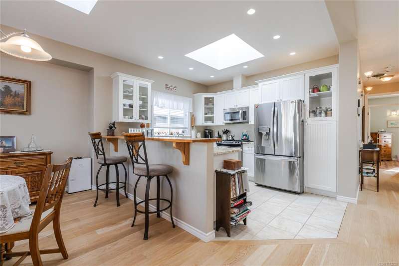 entertaining a breeze and the 9 foot ceilings, interior door transom lights and 4 skylights provide plenty of