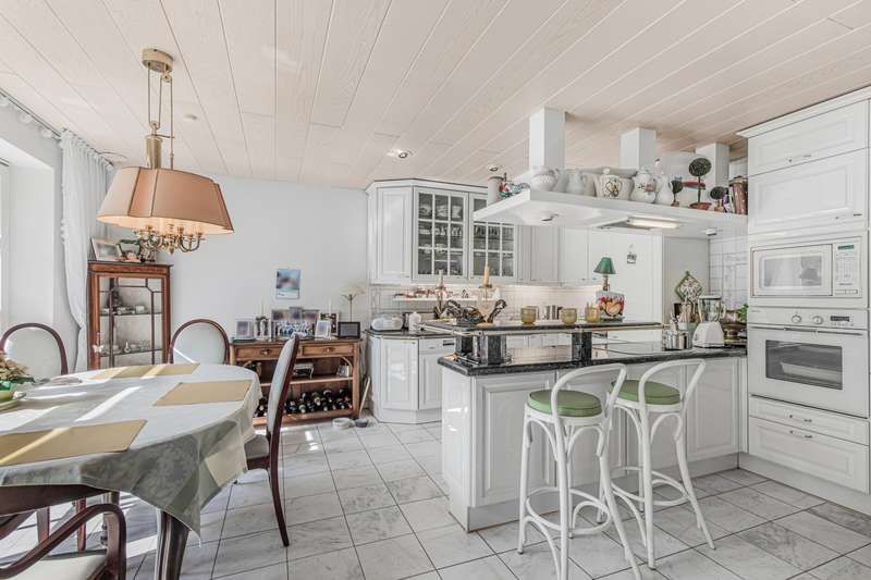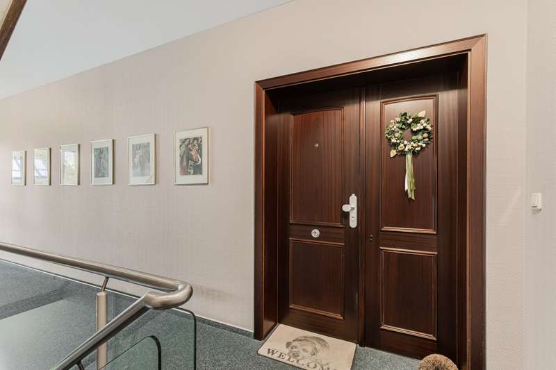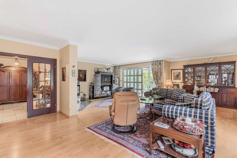 **Spacious 4-room apartment with fireplace and conservatory** Divided according to the Condominium Act (WEG). For sale is a well-kept condominium located in an apartment building built in 1987. Originally planned as two apartments, these were merged to create this spacious apartment with a living space of around 158 square meters. With four rooms, it offers enough space for your living needs. The property is a solid building with a brick façade and a pitched roof. The apartment is characterized by its upscale furnishings and well-maintained condition. The apartment is heated by central heating, which, in conjunction with underfloor heating, provides cozy warmth in all rooms. The spacious living area has high-quality parquet flooring and is complemented by a fireplace, which creates a pleasant atmosphere on chilly days. The suspended ceilings contribute to a modern spatial effect that creates a pleasant feeling of living. Particularly noteworthy are the two balconies and the conservatory, which each have an area of around 4 square meters and offer additional space to relax. The well-maintained plastic windows are fitted with double glazing and some are equipped with external roller blinds, which offer additional darkening options. The apartment has two bedrooms, one of which was fitted with new vinyl flooring in 2025, and two bathrooms. The guest WC, modernized in 2021, is equipped with a shower. The full bathroom has plenty of natural light and is equipped with two washbasins and a bidet. A high-quality fitted kitchen with brand-name appliances offers excellent equipment for cooking enthusiasts. A practical storage room within the apartment provides additional storage space. The hallways, bathrooms and kitchen are fitted with easy-care tiles. The technical renovations include a modernization of the heating control system carried out in 2022. Security is a top priority: Access to the apartment is equipped with a locking bolt as additional burglary protection. Modernizations such as various paint jobs underline the well-kept overall condition of the apartment. The apartment offers the advantage of an excellent internet connection via DSL, which is ideal for both home office and private use. Thanks to two outdoor garages, you no longer have to worry about parking spaces. The garages have tiled floors. You are cordially invited to come and see the charm and advantages of this condominium for yourself during a viewing. Please do not hesitate to contact us with any questions or to arrange an appointment. This property could become your new home, with its impressive quality and location.