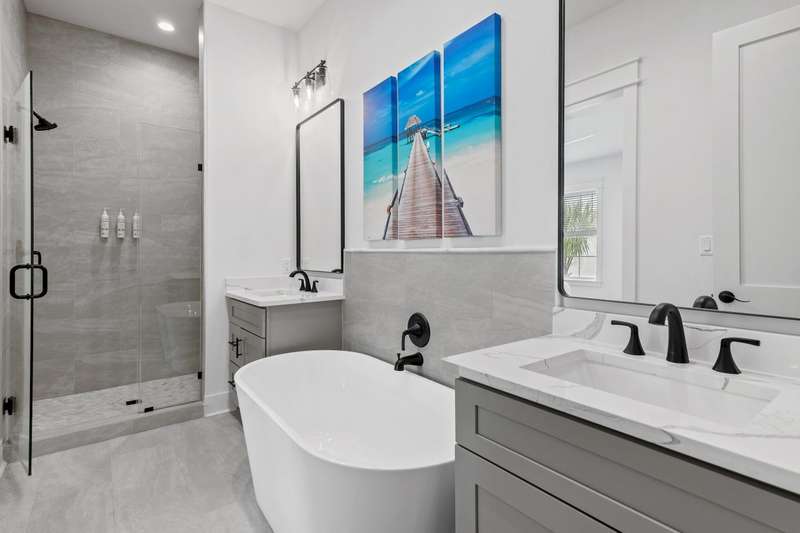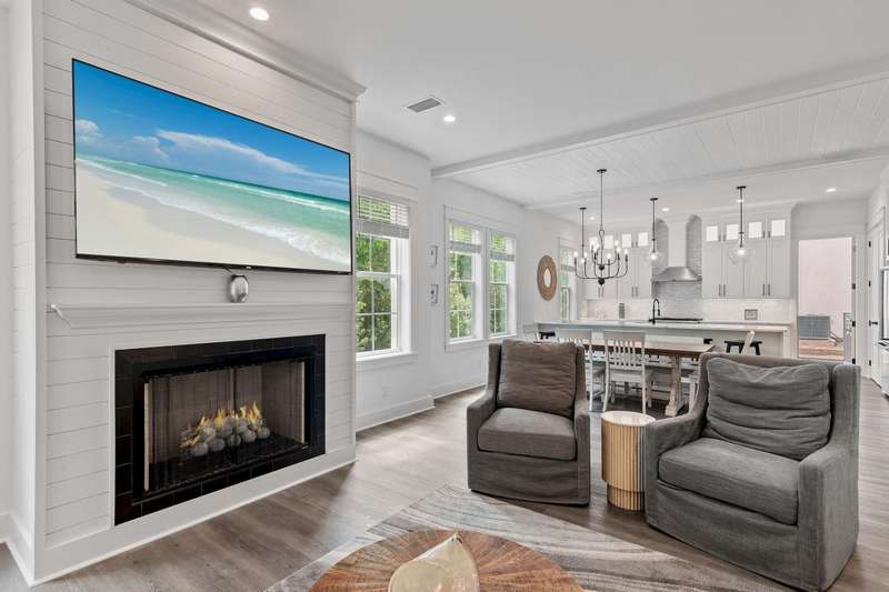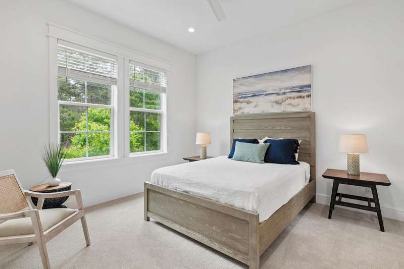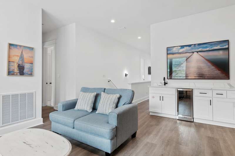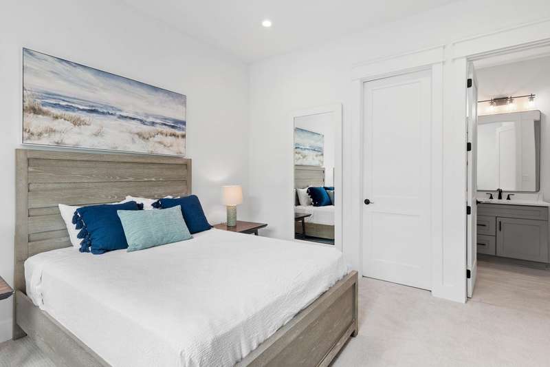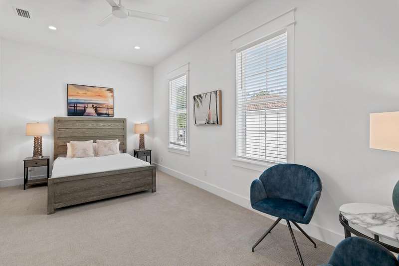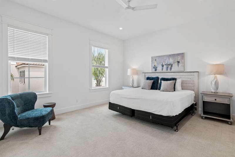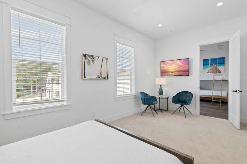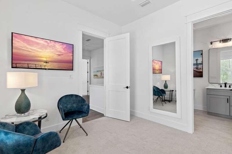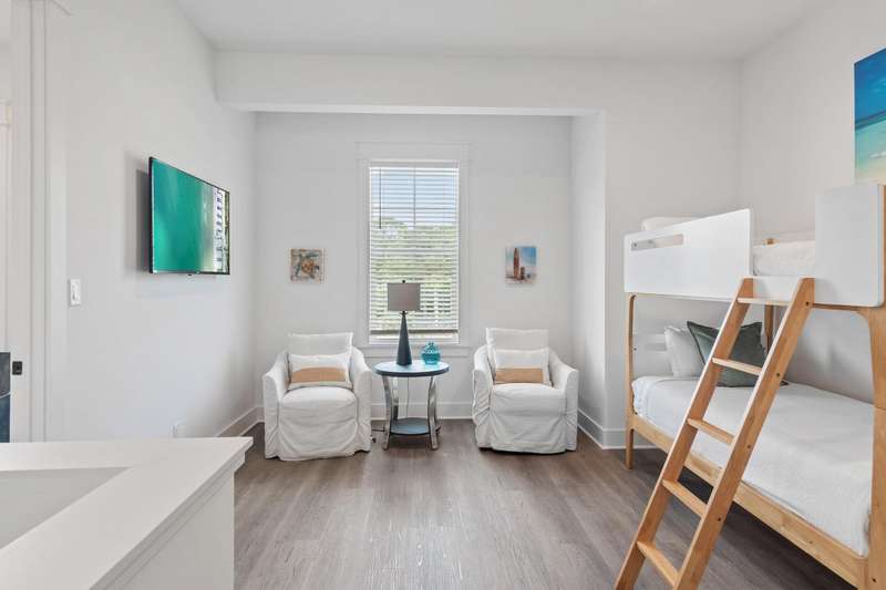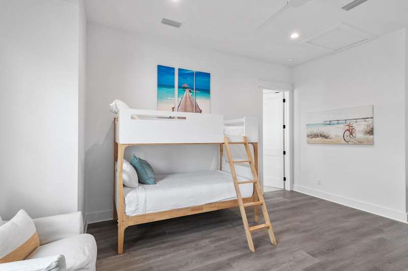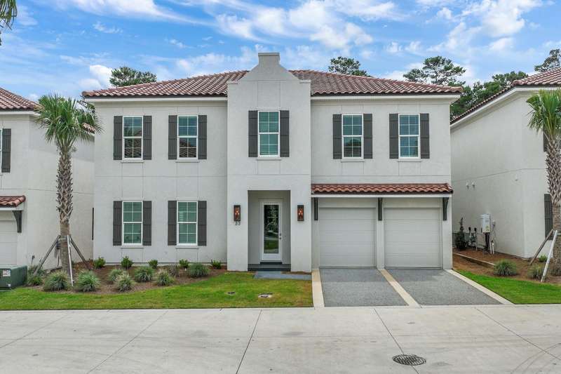 Step into modern coastal elegance in this thoughtfully crafted residence, located in the exclusive gated community of Tops'l Beach and Racquet Resort. This newly constructed 4-bedroom, (plus bonus room), 4.5-bathroom home in Grand Villas, offers a harmonious blend of luxury and comfort across 3,454 square feet of thoughtfully designed living space. Enjoy the convenience of primary suites on both the first and second floors, each featuring spa-like bathrooms for ultimate relaxation. The open-concept kitchen is equipped with top-of-the-line stainless steel appliances, custom cabinetry, and a spacious island, making it perfect for entertaining guests. Step outside to a screened patio featuring a built-in grill, perfect for alfresco dining and enjoying the Florida breeze. A home theater that doubles as an additional bedroom and twin bunks in the upstairs sitting area provide ample space for family and guests. The upstairs sitting area also includes a wet bar. Dual laundry rooms on each floor add to the home's convenience. Situated within the exclusive Grand Villas at Tops'l Beach Club, residents have access to a private community pool, as well as, state-of-the-art fitness center, tennis courts, additional swimming pools, and deeded beach access. Tops'l offers a laid-back coastal vibe with proximity to beautiful beaches and a variety of recreational amenities. Experience the perfect blend of luxury, comfort, and convenience in this exceptional beach retreat. Whether you're seeking a primary residence, vacation home, or investment property, 33 Palm Ridge Road offers an unparalleled coastal living experience.