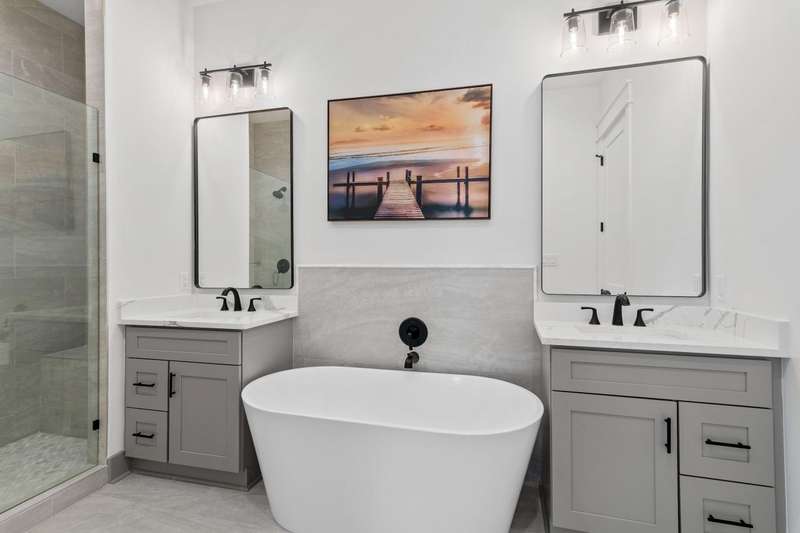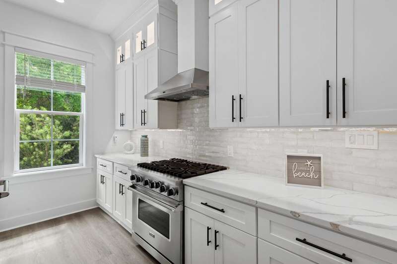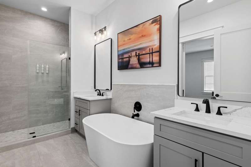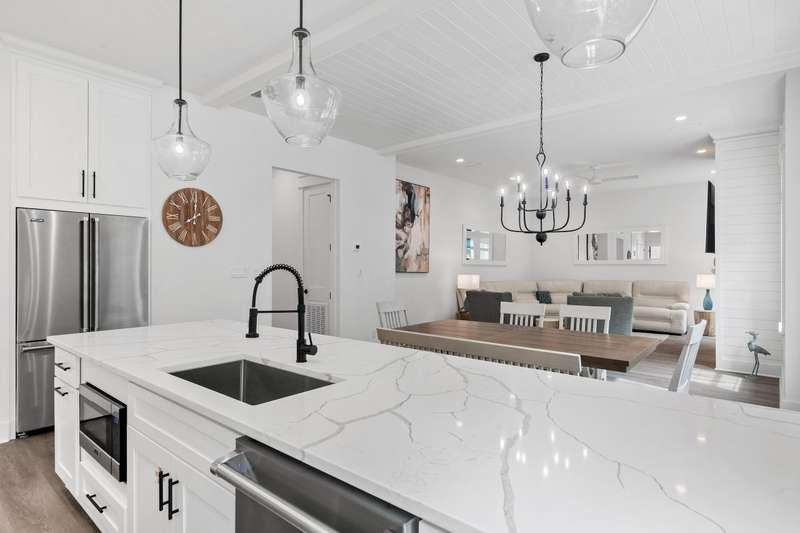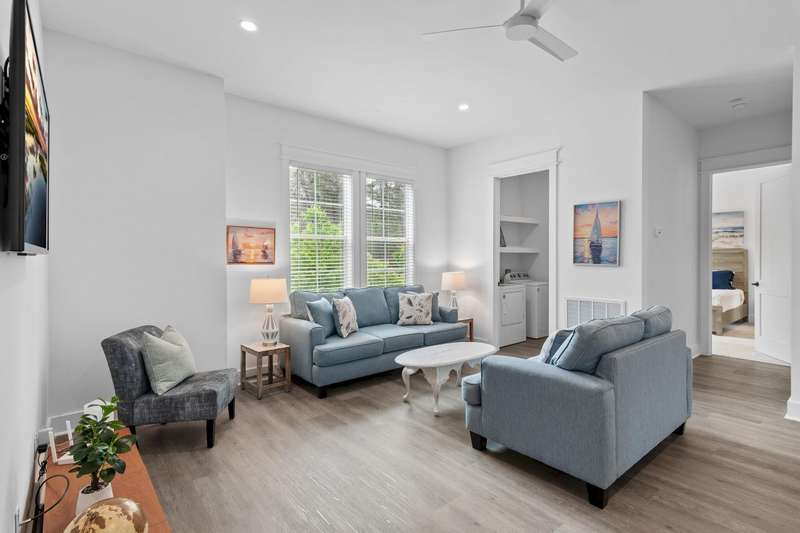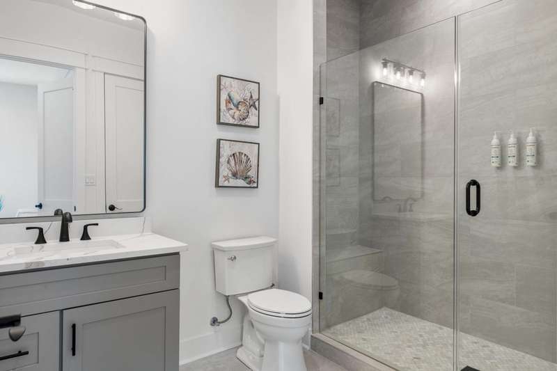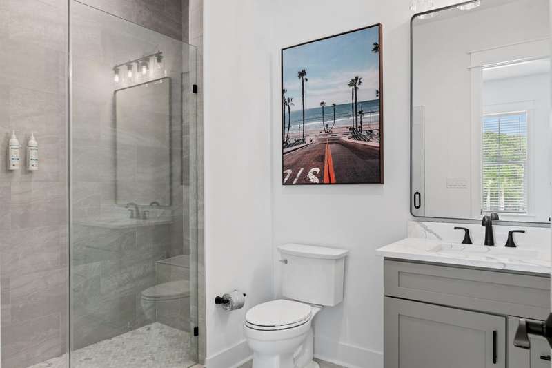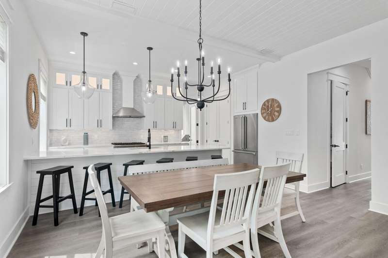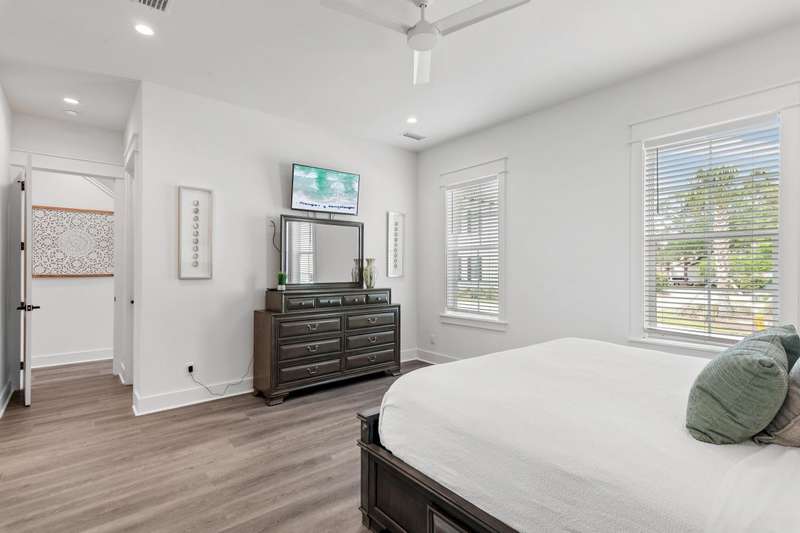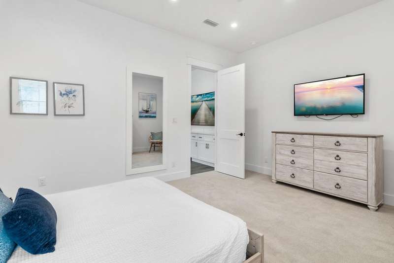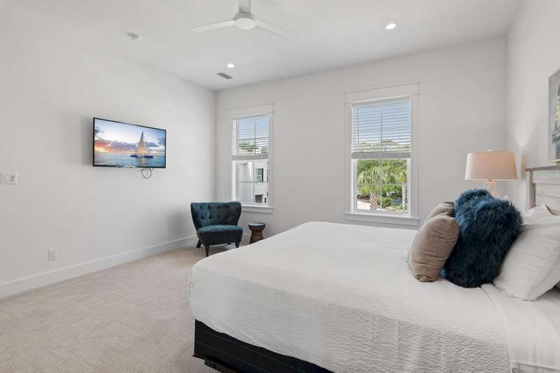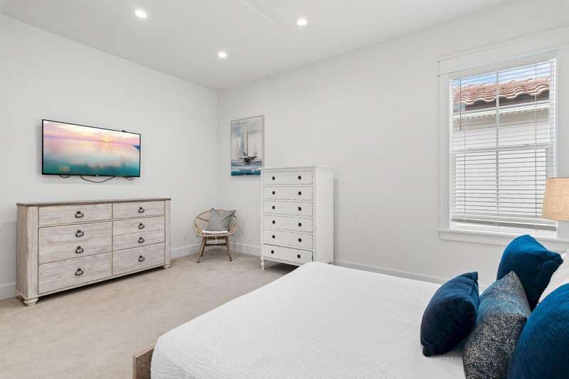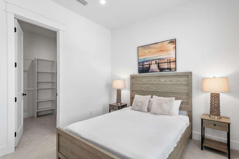 Step into modern coastal elegance in this thoughtfully crafted residence, located in the exclusive gated community of Tops'l Beach and Racquet Resort. This newly constructed 4-bedroom, (plus bonus room), 4.5-bathroom home in Grand Villas, offers a harmonious blend of luxury and comfort across 3,454 square feet of thoughtfully designed living space. Enjoy the convenience of primary suites on both the first and second floors, each featuring spa-like bathrooms for ultimate relaxation. The open-concept kitchen is equipped with top-of-the-line stainless steel appliances, custom cabinetry, and a spacious island, making it perfect for entertaining guests. Step outside to a screened patio featuring a built-in grill, perfect for alfresco dining and enjoying the Florida breeze. A home theater that doubles as an additional bedroom and twin bunks in the upstairs sitting area provide ample space for family and guests. The upstairs sitting area also includes a wet bar. Dual laundry rooms on each floor add to the home's convenience. Situated within the exclusive Grand Villas at Tops'l Beach Club, residents have access to a private community pool, as well as, state-of-the-art fitness center, tennis courts, additional swimming pools, and deeded beach access. Tops'l offers a laid-back coastal vibe with proximity to beautiful beaches and a variety of recreational amenities. Experience the perfect blend of luxury, comfort, and convenience in this exceptional beach retreat. Whether you're seeking a primary residence, vacation home, or investment property, 33 Palm Ridge Road offers an unparalleled coastal living experience.
