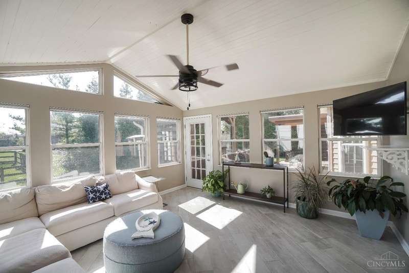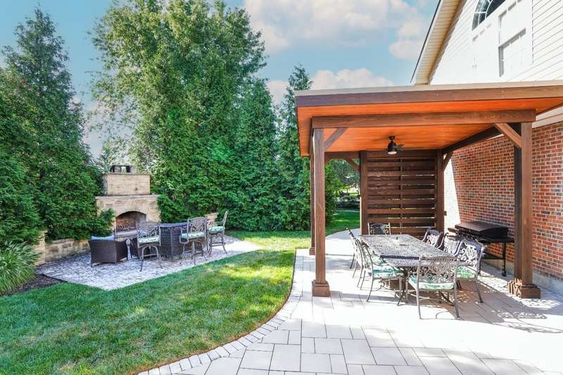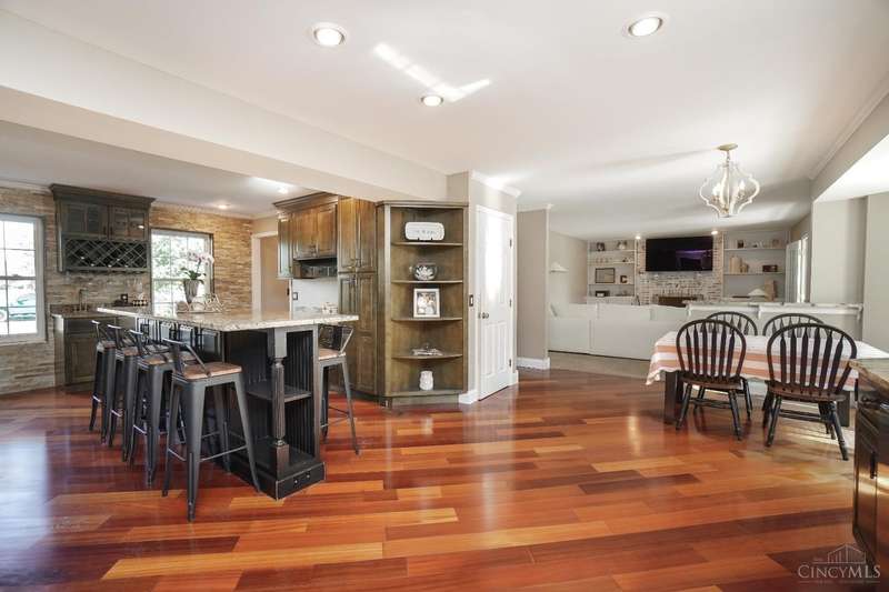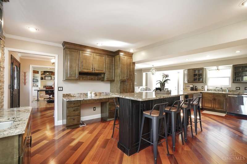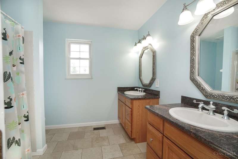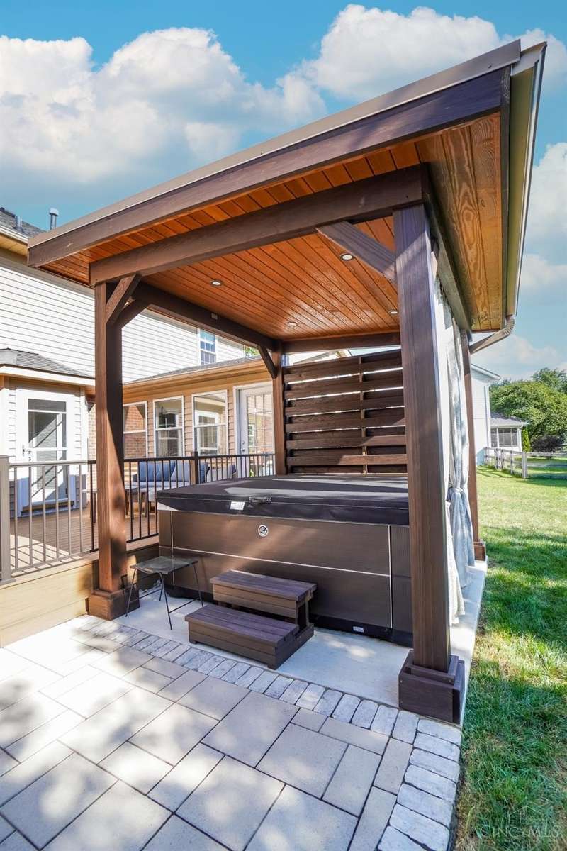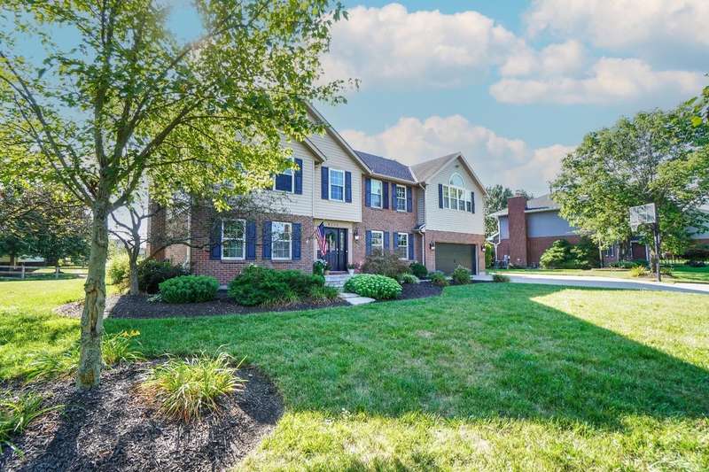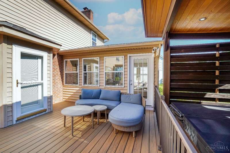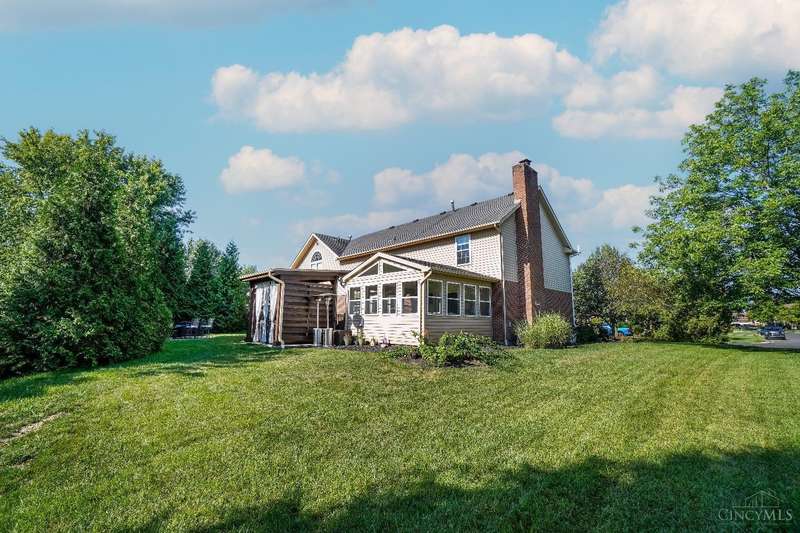 Stunning 4-Bedroom Home with Custom Kitchen & Luxurious Outdoor Living in Mason offers over 3,500 sq ft of finished living space, including 4 spacious bedrooms upstairs & versatile bonus rm/bedroom on lower level. With 4 full baths & 1 half bath, comfort & convenience are built in. The heart of the home is a custom kitchen featuring large granite island, upgraded stainless steel appliances (including ice maker) & striking stone accent wall. Open-concept family rm is filled with natural light, while the living rm showcases built-in bookcases & woodburning fireplace. Retreat to the expansive primary suite with vaulted ceiling, see-through gas fireplace between bedroom & bath, 2 walk-in closets, private sitting rm & spa-like bath with jetted tub, granite counters, double sinks & custom cabinetry. Two more 2nd-floor baths also offer double vanities. The backyard oasis features a covered patio, covered hot tub & stone fireplace set on stone flooring perfect for entertaining year-round.
