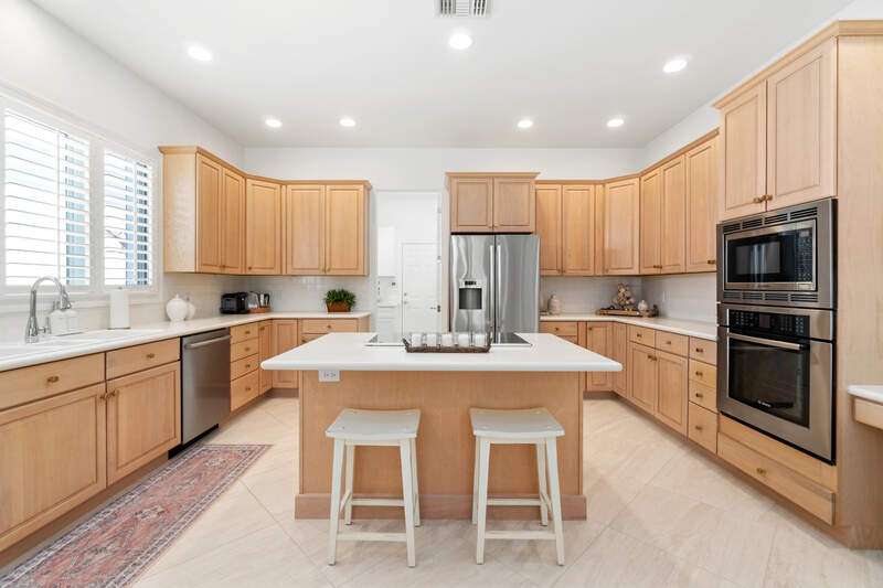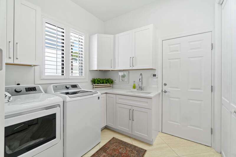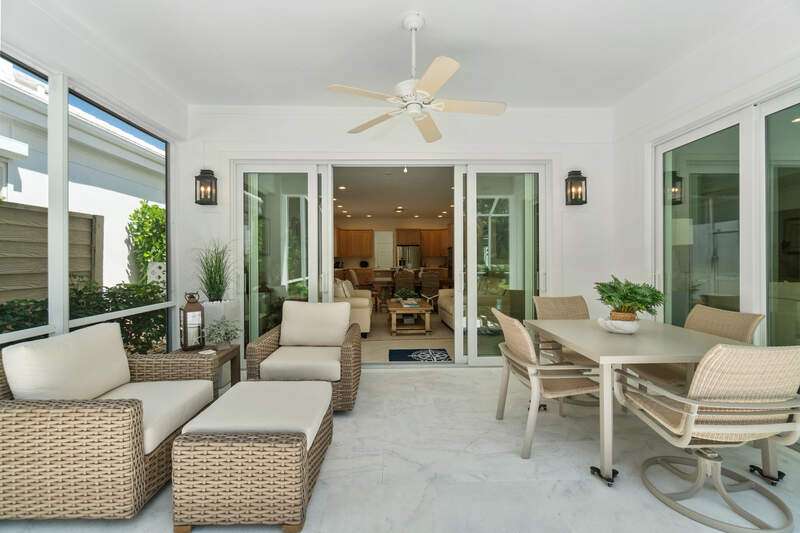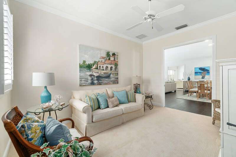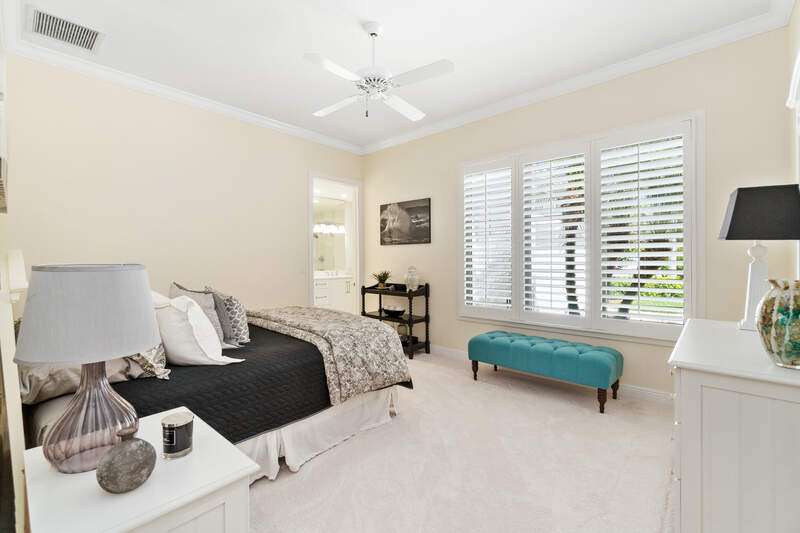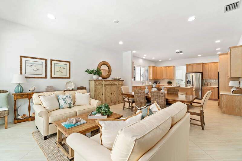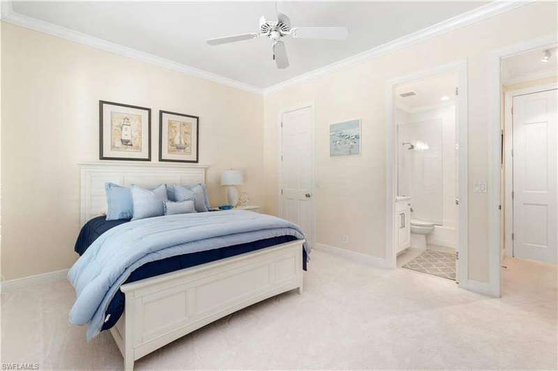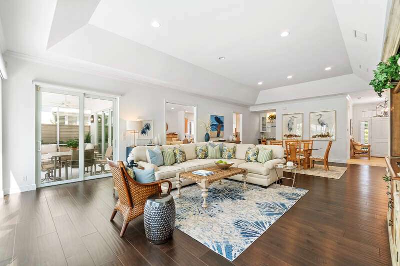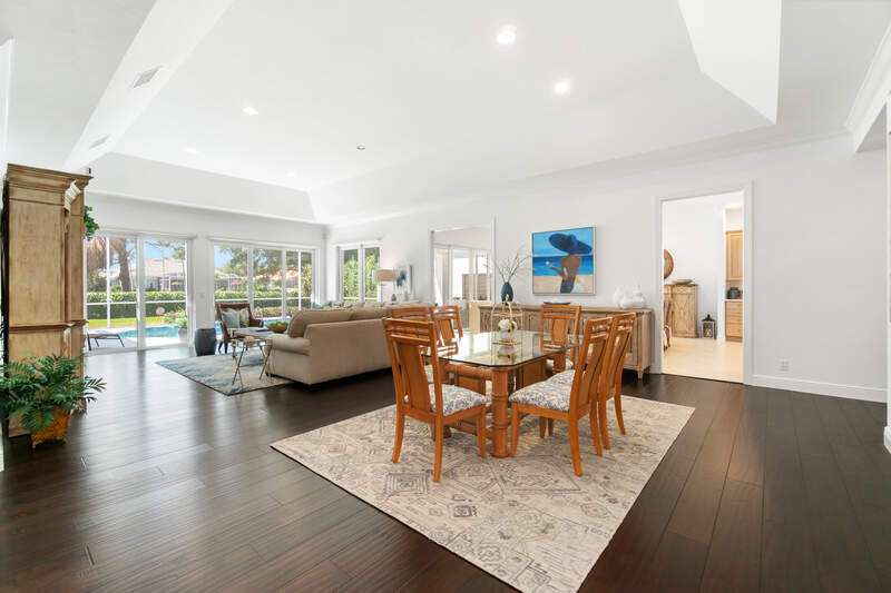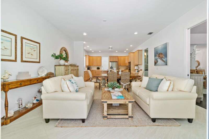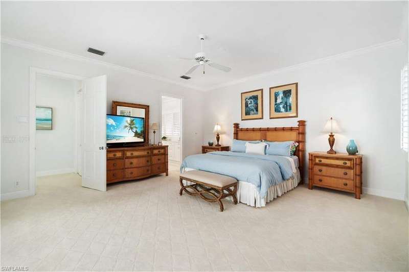 Beautifully renovated coastal contemporary home with spectacular golf course views located in North Naples' coveted "Audubon Golf & Country Club". Enjoy the sought-after Southern exposure, providing breathtaking sunsets and optimal sunlight over the pool. This beautiful residence showcases a fabulous open floor plan with 4 bedrooms, 3.5 bathrooms, a light & bright interior, soaring high ceilings, & beautiful new engineered hardwood floors and sleek ceramic tile. Notable upgrades include a new roof (2021), electric hurricane shutters, hurricane impact windows (front of home), new sliding glass doors, a hurricane rated garage door, and a brand-new HVAC (2025). Step outside to the expansive screened-in lanai, where a resurfaced saltwater heated pool awaits, complete with new pool tile and travertine decking (2024). Surrounded by lush landscaping, this outdoor retreat provides multiple lounging areas and stunning golf course vistas - offering the perfect space to relax in privacy. Inside, the kitchen boasts light cabinetry, white countertops, and premium Bosch appliances, including a new induction cooktop (2023). A separate wet bar with a built-in beverage cooler adds convenience for entertaining. The generous primary suite is a private retreat featuring a spa-like bathroom with dual vanities, a spacious walk-in shower, and a freestanding soaking tub for ultimate relaxation. Audubon's prime location is just 5 minutes from Mercato and world-class beaches, and the community offers a gated/guarded entrance, an 18-hole championship golf course, tennis, pickleball, a Bayside boardwalk, and a newly renovated clubhouse with dining and a second beautiful poolside club and cafe.