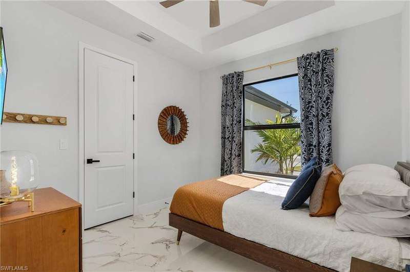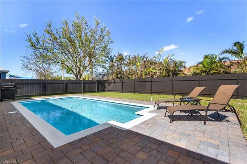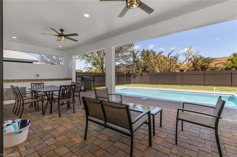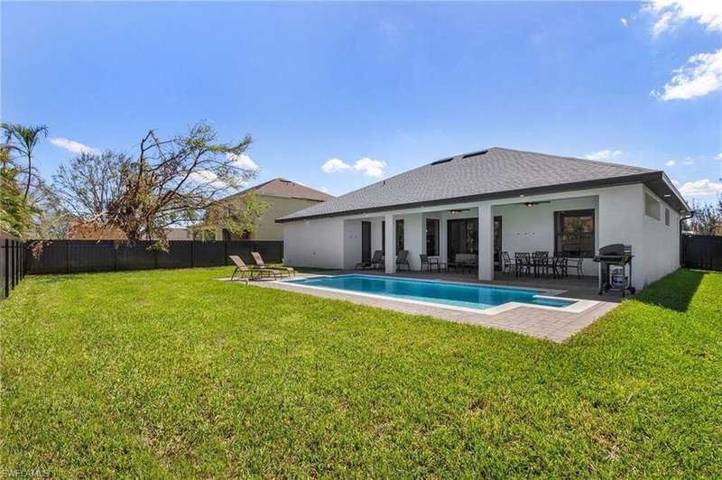 NO FLOOD INSURANCE REQUIRED. The moment you approach this stunning home, the pride of ownership is immediately evident. A newer build that has been meticulously cared for, this property boasts a beautifully landscaped and fenced yard, and a spacious 3-car garage with a paved driveway. Step through the elegant double glass doors and be greeted by soaring vaulted ceilings in the open-concept great room. The heart of the home, the kitchen, seamlessly flows into the great room and features a large center island with sleek quartz countertops and plenty of seating, perfect for entertaining. Adjacent to the kitchen, the dining area offers additional space for gatherings, enhancing the home's overall functionality and style. Designed with a split bedroom floor plan, the primary suite offers privacy on one end of the home, complete with a grand en-suite bathroom that includes a luxurious slipper tub, a beautifully tiled shower, and double vanities. The additional bedrooms are generously sized and thoughtfully scattered throughout the home, with a well-appointed bathroom conveniently located nearby. Step outside and experience your own private oasis-enjoy the tranquil fenced yard, a large lanai with an outdoor food prep space, and a refreshing heated swimming pool, ideal for relaxation and entertainment. This home is currently an active Airbnb, offering a turnkey opportunity for buyers who wish to continue this successful rental venture. All future bookings can be seamlessly transferred to the new owners if desired. Don't miss out on this exceptional home-schedule your appointment today to see this beauty in person! *VETERAN FRIENDLY*