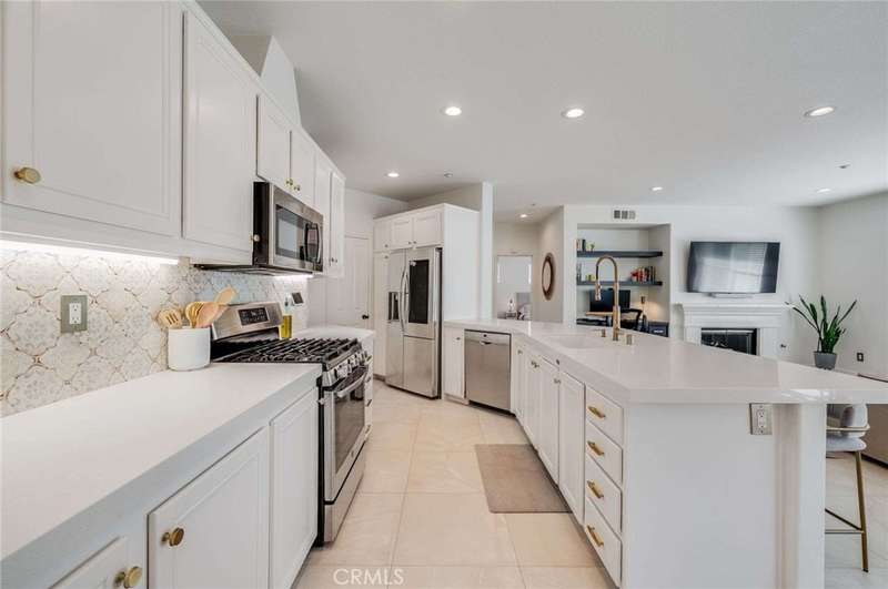 Welcome to the best in luxurious resort living! This home has been tastefully updated with modern finishes and thoughtful details throughout. The open floor plan includes a welcoming living room with a cozy fireplace, a designated dining area, and an office nook with built-in desk ad bookshelves. Sliding glass doors lead to a private balcony, and a gas grill is connected to the main line, ensuring you never run out of propane. The kitchen is a true center piece, featuring glossy white cabinets, quartz countertops, a granite sink, an island/bar with seating for four, a spacious walk-in pantry and smart appliances. Energy-efficient recessed smart LED lighting throughout add both convenience and ambiance. The primary suite offers a walk-in closet and spa-inspired bathroom with custom tile, stylish lighting, updated vanities and upgraded fixtures. A second bathroom has also been refreshed with modern finishes. Additional highlights include marble flooring, inside laundry area and practical upgrades such as a new HVAC system (heat pump and air handler) and a water heater. Besides smart lighting and appliances, the home also features a smart thermostat and doorbell. The finished garage is equally impressive with custom shelving, overhead storage racks, updated lighting, a durable epoxy floor, and a built-in workbench. It's also EV-charger ready. Talega offers a lap pool, play pool, splash park, tennis and pickleball courts, bocce ball court, hiking/biking trails, clubhouse, conference rooms, and community events. Top-notch schools include Vista Del Mar Elementary and Middle, and San Clemente High School. Move-in ready and designed for today's lifestyle, this home blends style, comfort and value.
