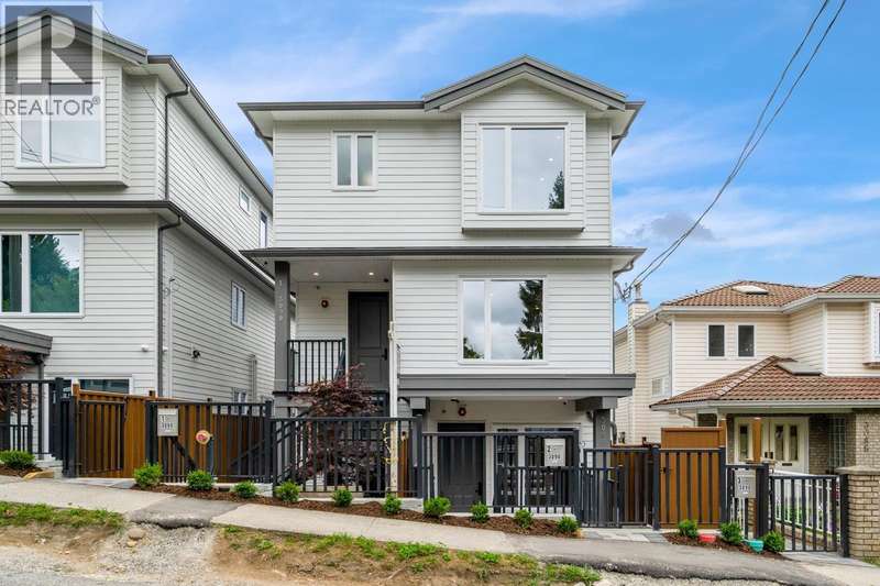 Quality built brand new two level front unit in a Triplex setting. No Strata Fee. The main floor comes with a bright and spacious living room ,dinning room and a gourmet kitchen. The second floor has 3 bedrooms and two full baths. Other features include; Air condition, HRV, Heat Pump, Fridge, Stove, Washer and Dryer, Dish Washer, Window coverings, security system, EV outlet, Fully landscaped and fenced. Built by a reputable builder with years of experience. Prime location ideally situated between the Joyce-Collingwood and 29th Ave Skytrain stations, close to park, school and bus. Easy to Show. By Appointment Only. (id:58403)