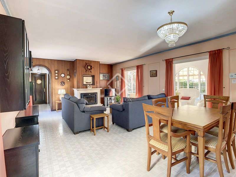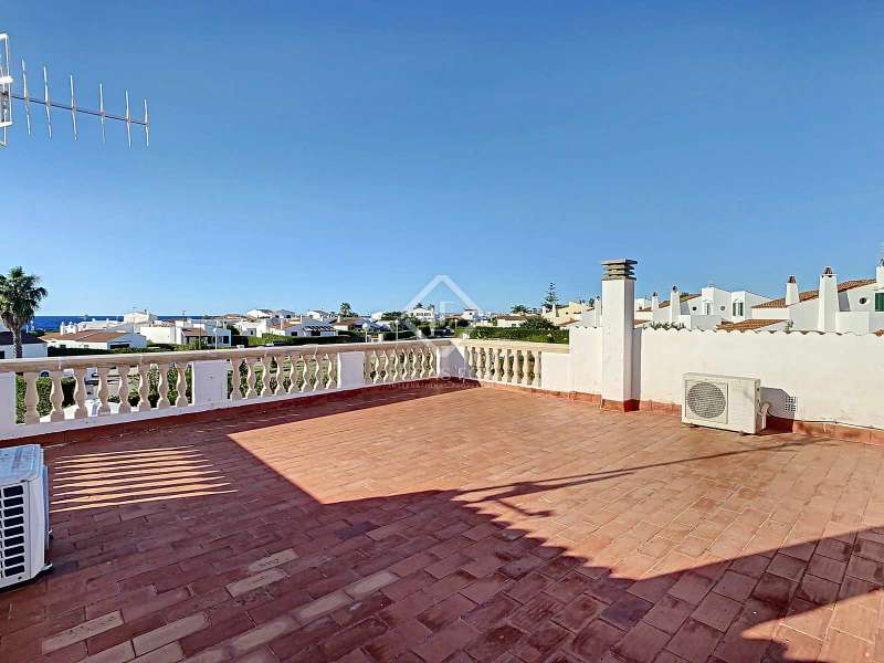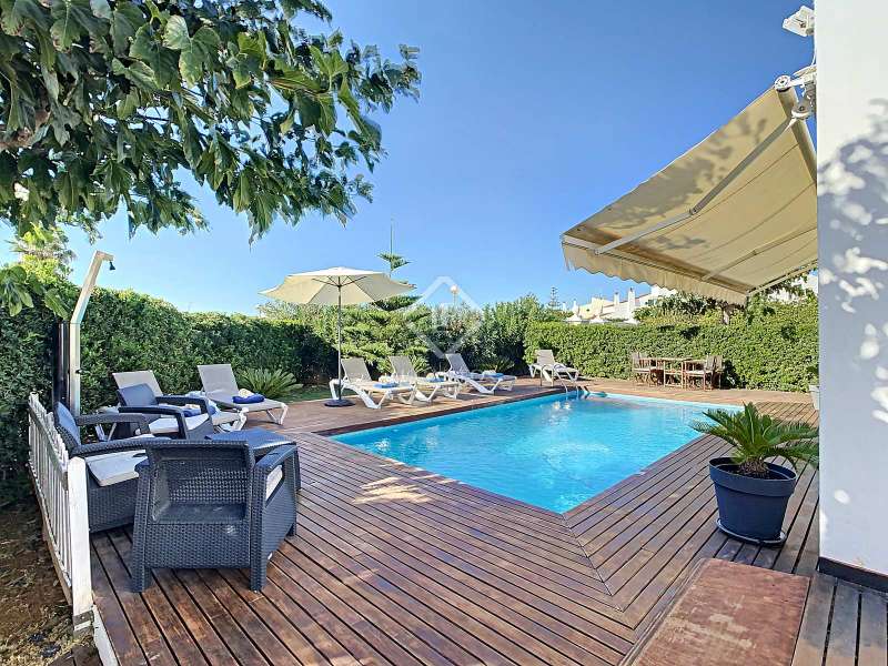 Villa of 164 m² built on a plot of 890 m² in Cala'n Bosch, in the municipality of Ciutadella de Menorca. The property is distributed on one floor with the day area clearly differentiated. At the entrance, we find the separate kitchen , a bathroom, a garage and a corridor that leads to the living-dining room. This has a wood-burning fireplace and access to a covered porch with large windows that allow abundant light to enter the entire room and offer views and access to the pool. From the living-dining room there is also access to an courtyard with a barbecue area and a staircase that leads to the solarium terrace with sea views. In the night area we find three double bedrooms and a bathroom. All rooms in the house have air conditioning and heating splits. The exterior has a beautiful 25 m² swimming pool surrounded by a very comfortable tropical wood terrace for sunbathing and a well-kept garden. A perfect property to spend time with family and/or friends or to rent it out seasonally as it has a tourist license. Please contact us for more information or to arrange a viewing.