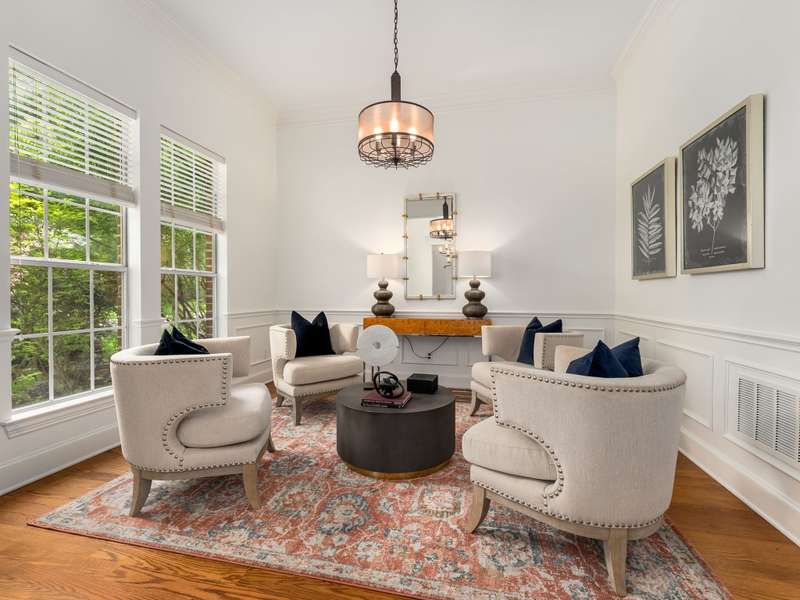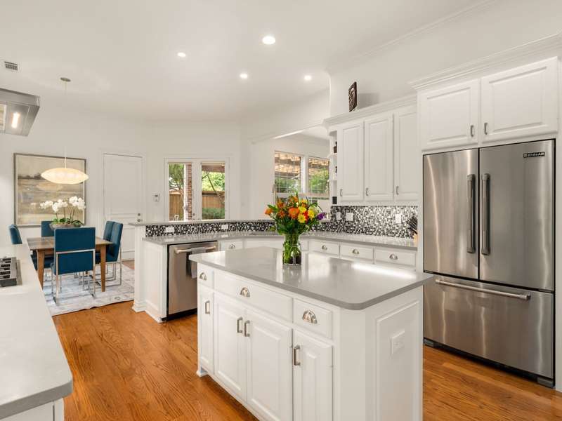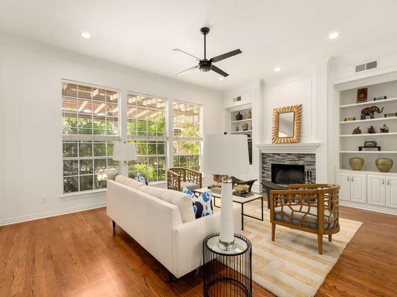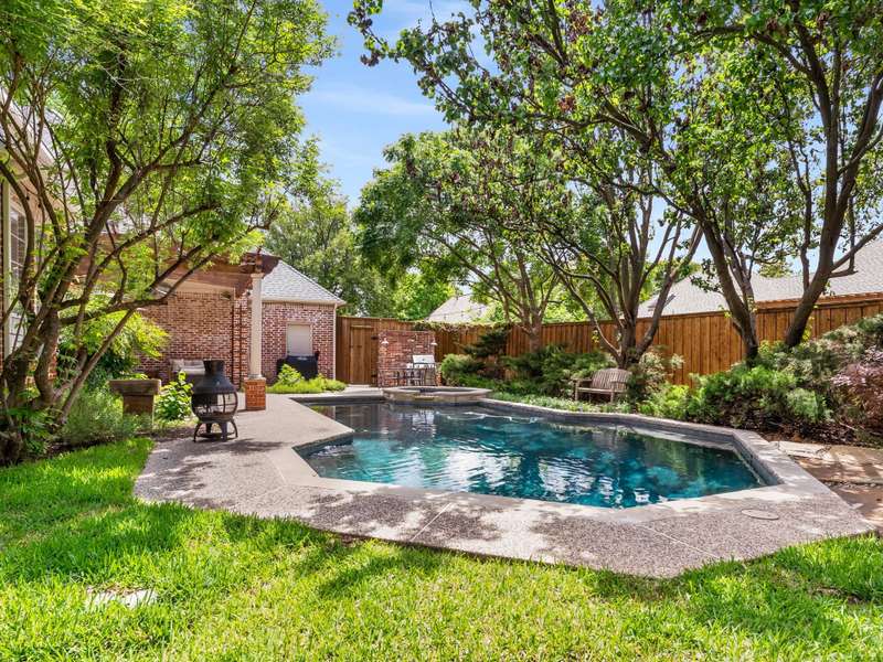 Nestled on a picturesque corner lot, this stunning home is surrounded by a canopy of mature trees, creating a serene oasis in the city. Step inside to an open floor plan where the kitchen flows right into the dengreat for hosting or just hanging out. You also get the charm of separate dining and living rooms nearby, keeping things cozy without feeling closed off. An exquisite courtyard with lush landscaping is situated just off the kitchens eating area, offering a serene and tranquil ambiance. On the main level, the spacious primary bedroom and a dedicated office provide convenience and privacy. Upstairs youll find three more bedrooms plus a game roomplenty of space for everyone. One of the best features is the wall of windows in the den and breakfast room, that brings in tons of natural light and frames the backyards lush views. Step outside to your private paradise. Whether dining alfresco, lounging by the sparkling pool, gathering around the fire pit, or swinging under the trees, the backyard offers countless spaces to unwind and reflect. Whether youre hosting friends or just soaking up the quiet, this backyard is a true escape right in the city.