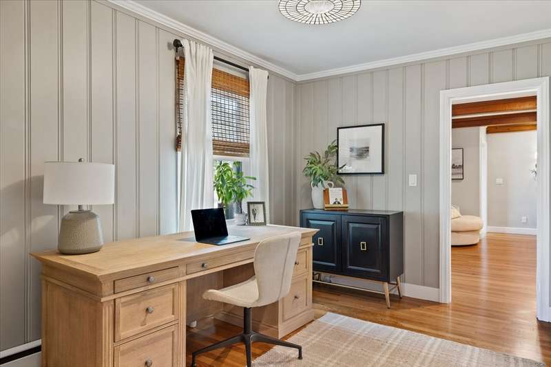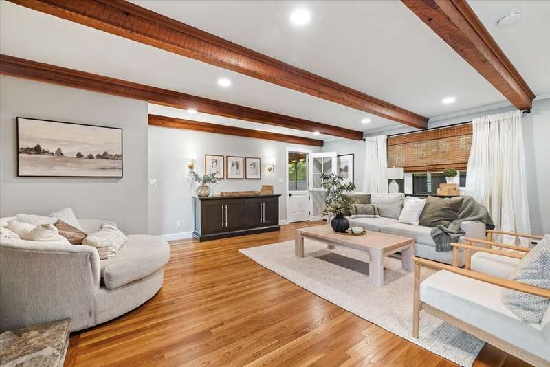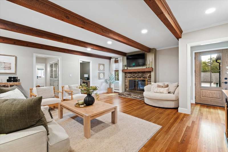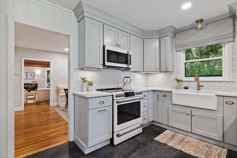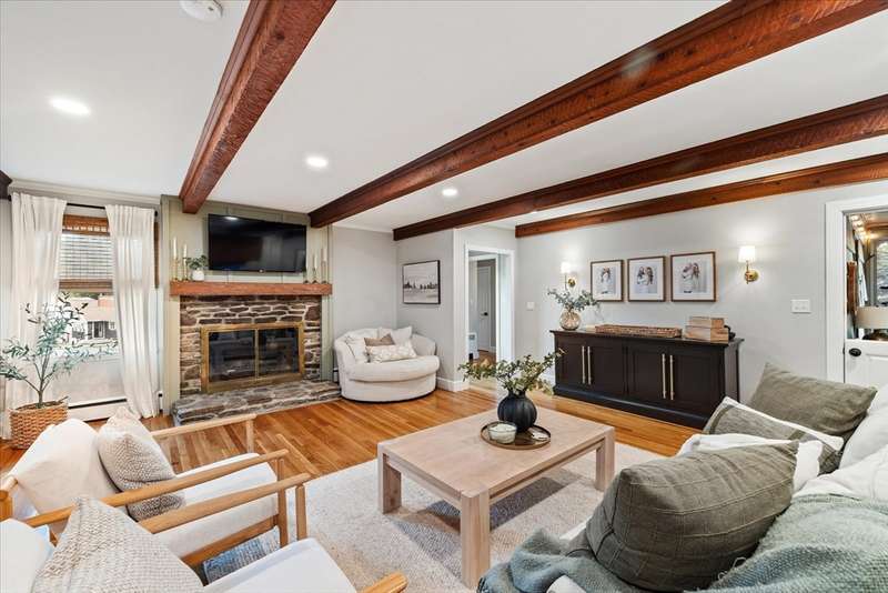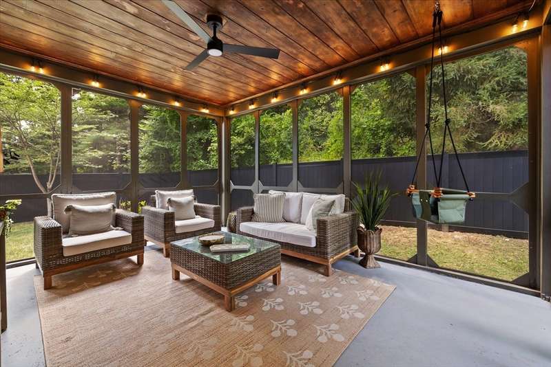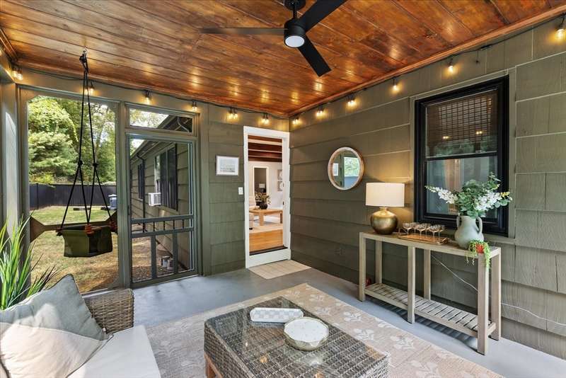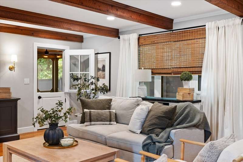 BUYERS GOT COLD FEET! Welcome to your storybook home. This 2 bed, 1.5 bath charmer has been professionally redesigned inside & out, blending timeless character with modern style. The updated kitchen features quartz countertops, Café appliances, & double washer/dryer. Enjoy a dining room with built-ins and bench seating, a beam-lined living room with hardwood floors & wood-burning fireplace, & a Dutch door opening to a private screened porch perfect for every season. The office offers painted paneling & wallpaper-lined built-ins for extra character. There are two generous bedrooms with double cedar-lined closets & refreshed baths with tile-lined shower & tub. The unfinished basement offers expansion potential or storage, and the 2-car garage boasts a new epoxy floor & fresh paved driveway. With new roof, windows, doors, and full interior/exterior paint, plus a fenced yard in an ideal commuter location near schools, parks, and dining—there’s nothing left to do but fall in love!