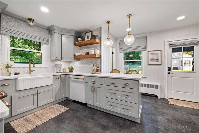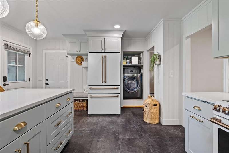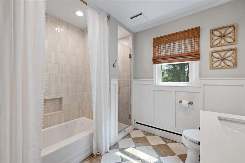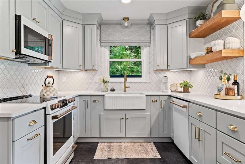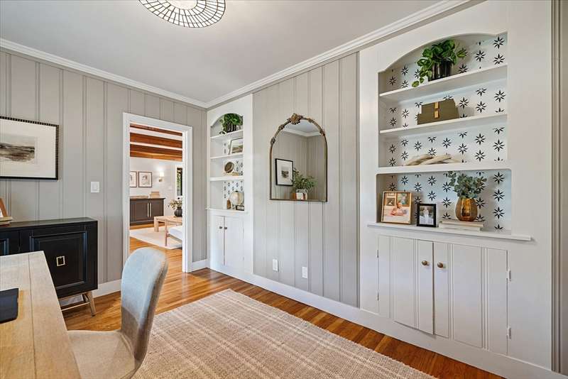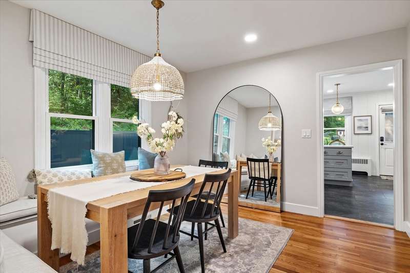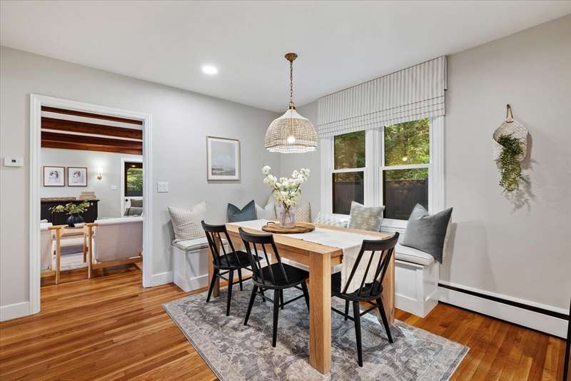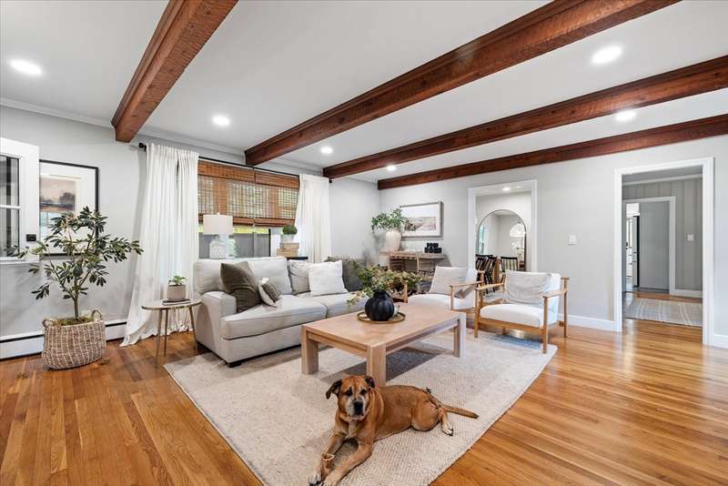 BUYERS GOT COLD FEET! Welcome to your storybook home. This 2 bed, 1.5 bath charmer has been professionally redesigned inside & out, blending timeless character with modern style. The updated kitchen features quartz countertops, Café appliances, & double washer/dryer. Enjoy a dining room with built-ins and bench seating, a beam-lined living room with hardwood floors & wood-burning fireplace, & a Dutch door opening to a private screened porch perfect for every season. The office offers painted paneling & wallpaper-lined built-ins for extra character. There are two generous bedrooms with double cedar-lined closets & refreshed baths with tile-lined shower & tub. The unfinished basement offers expansion potential or storage, and the 2-car garage boasts a new epoxy floor & fresh paved driveway. With new roof, windows, doors, and full interior/exterior paint, plus a fenced yard in an ideal commuter location near schools, parks, and dining—there’s nothing left to do but fall in love!