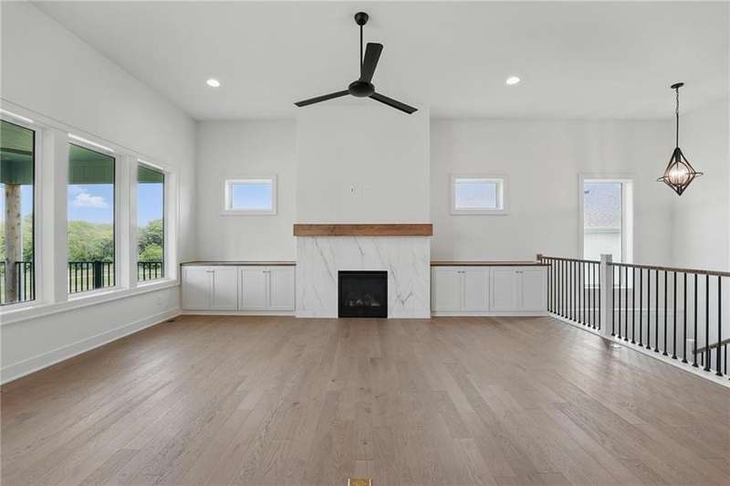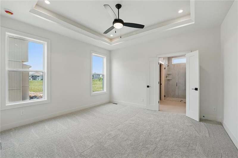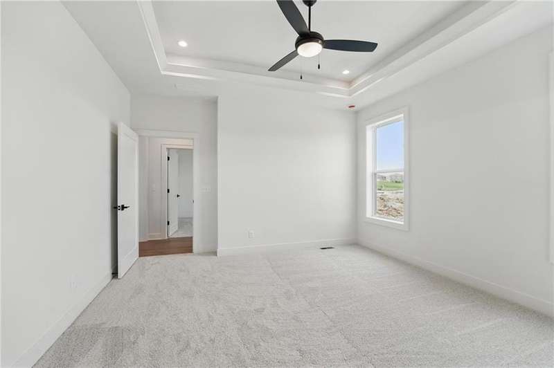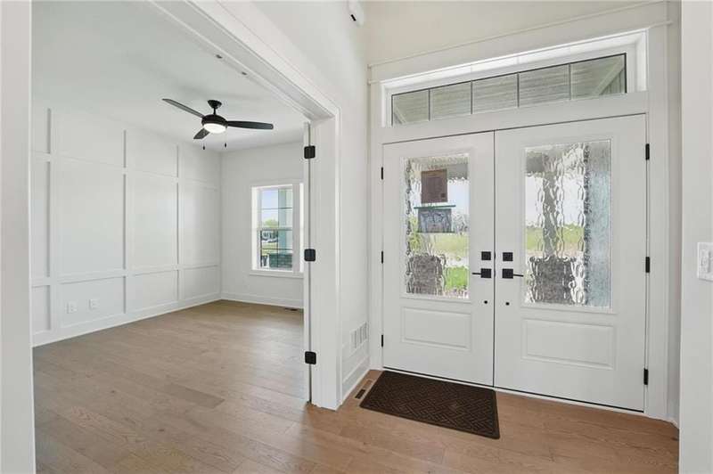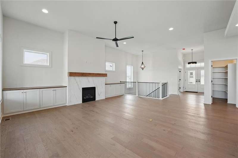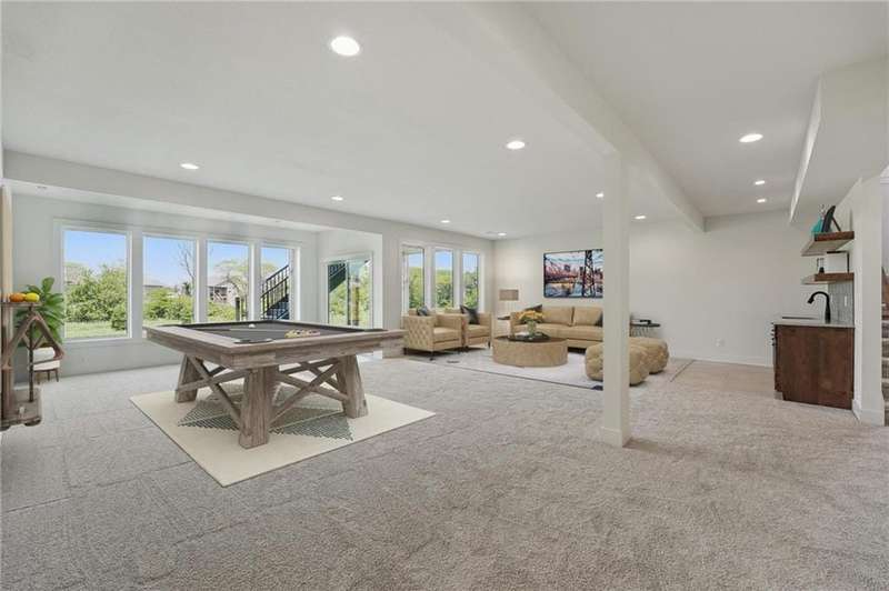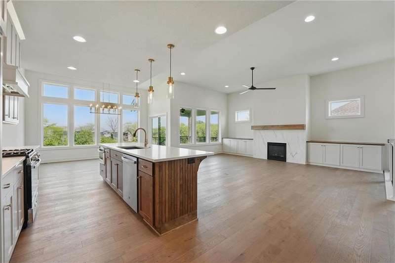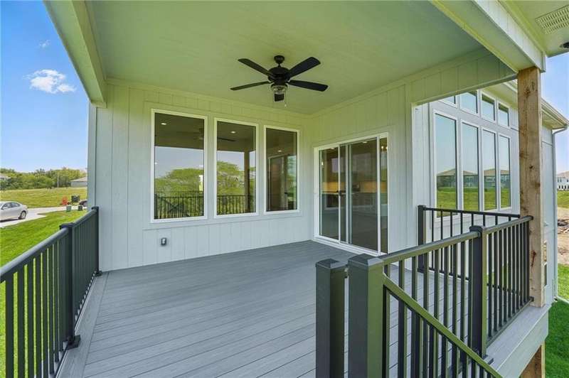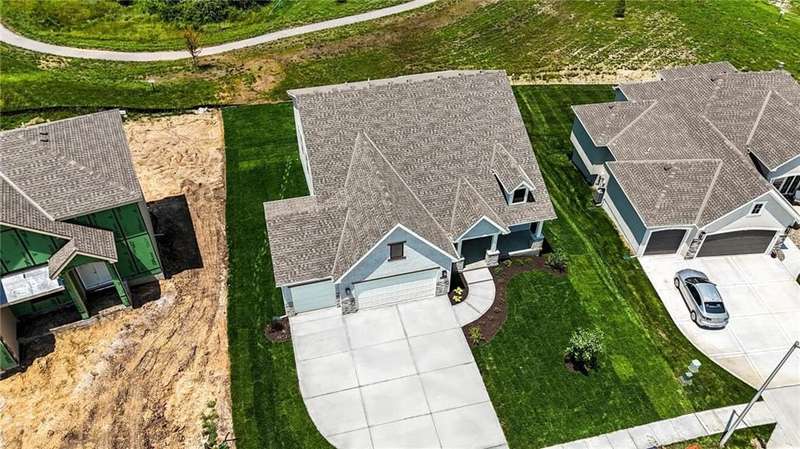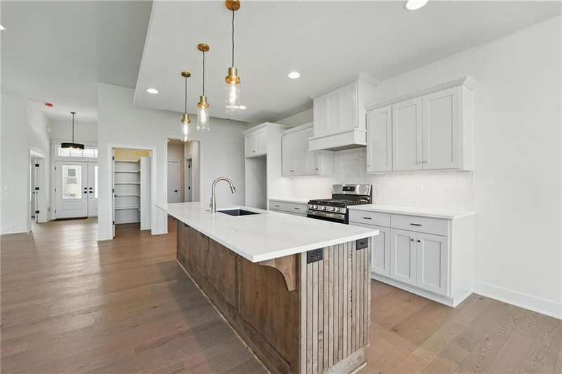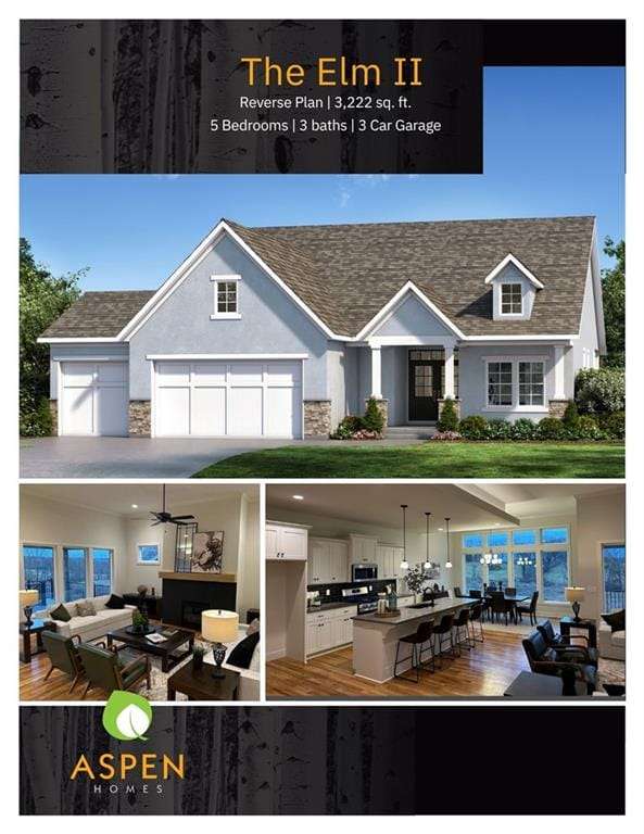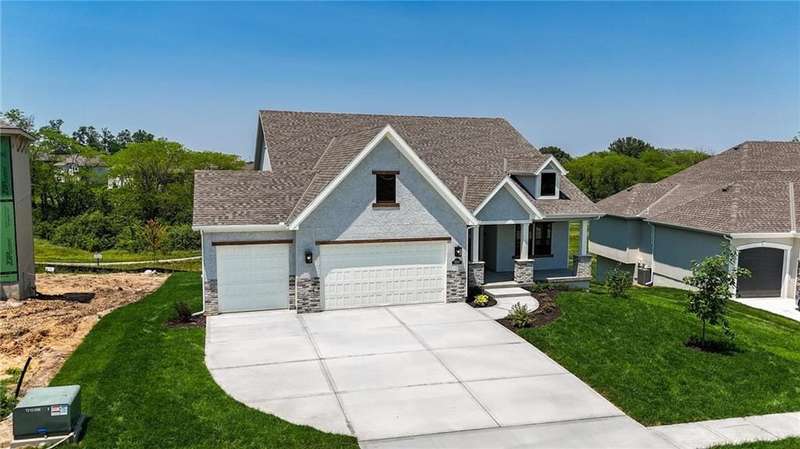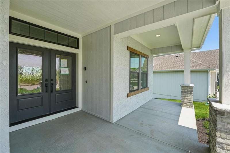 Model Home Now For Sale! New Price & Move In Ready!!! Stunning Elm II Ranch/Reverse 1.5 by Aspen Homes in a Prime Location! Discover the perfect blend of luxury and functionality in this Elm II Reverse 1.5, thoughtfully crafted by Aspen Homes. This exceptional home offers a spacious and inviting Great Room with gleaming hardwood floors, custom built-in cabinetry, and an abundance of natural lightcreating an open, airy feel ideal for both relaxation and entertaining. The gourmet kitchen is a chefs dream, featuring custom cabinetry, sleek quartz countertops, a generous walk-in pantry, a stylish designer backsplash, and a high-end gas range for all your culinary creations. Enjoy main-level living with a luxurious primary suite that includes a spa-like primary bath with a walk-in tiled shower, a double vanity, and an expansive walk-in closet. Additionally, the main level includes secondary bedroom and a versatile 3rd bedroom/office space with a stunning feature wall and elegant glass French doors. The finished lower level provides even more living space with plenty of windows and a fabulous wet bar, perfect for hosting gatherings or unwinding. Step outside onto the covered composite deck, where you can enjoy your premium walkout lot backing to serene trees and green space. This home also boasts a variety of energy-efficient features, including Energy Star windows, Energy Star appliances, blown insulation, a tankless water heater, a self-balancing ERV system, a 96% efficiency furnace, and even a car charging outlet, making it both eco-friendly and cost-efficient. Located in the highly sought-after Staley High School boundaries, within the Hunt Midwest Communities, this home is just a short walk from Platte Purchase Park, and comes with access to fantastic community amenities, including a swimming pool and walking trails. Taxes & sqft approx.