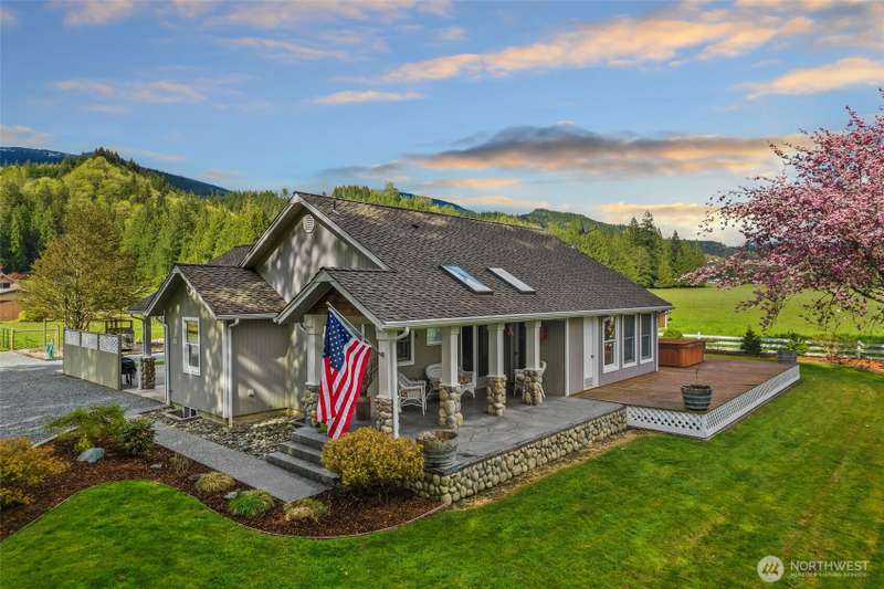 Searching for a peaceful lifestyle? Don't miss this 5 bed custom home with so much to offer! Property includes huge heated shop, pasture with water, orchard with 75 blueberry bushes on dripline, garden, greenhouse, chicken coop & so much more! Beautiful views of mountains, valley farmland, elk & other wildlife. Enjoy a peaceful life in the heart of the North Cascades with outdoor recreation at your doorstep. Open concept main floor living area with lovely river rock fireplace, primary bedroom opens to deck with hot tub, spacious closet, in-suite bathroom with large multi-head steam shower & heat towel rack. Fully finished basement with large rec-room, wet-bar & pool table. Shop has room for all your toys & projects. The perfect homestead!