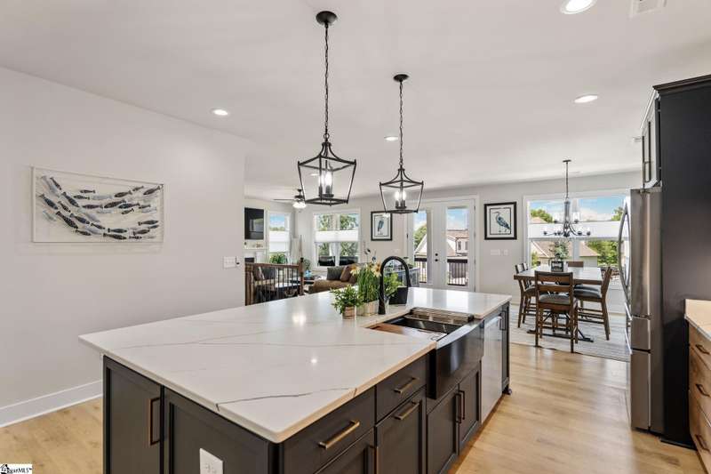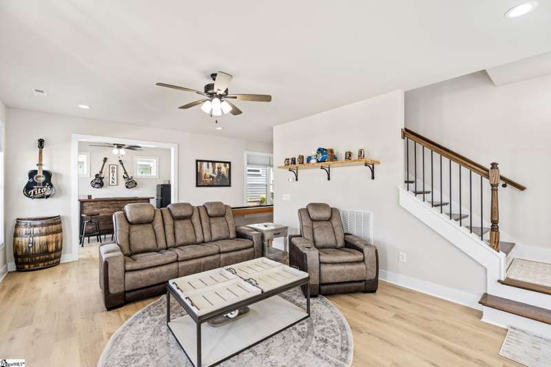 Listed by Holly May, Wilson Associates Real Estate. For more info call Holly May at (864) 640-1959. SELLER MOTIVATED DUE TO RELOCATION giving you this NEW PRICE! Luxury lake living at an affordable price! Welcome home to this stunning Charleston-style 5-bedroom, 4-bathroom retreat nestled in the tranquil lakefront community of Stillwaters at Lake Robinson. With thoughtful design, upscale finishes, and seasonal lake views, this home blends elegance with the relaxing pace of lake life. The main living area, where an open-concept layout invites effortless entertaining opportunities is the focal point of the home. The chef’s kitchen shines with quartz countertops, a massive eat-in island, stainless steel appliances including a wine chiller, and a built-in wall oven/air-fryer, and microwave. The kitchen flows seamlessly into the dining area and spacious living room, which opens onto a covered deck overlooking Lake Robinson—perfect for your morning coffee or sunset wind-down. The OWNER'S SUITE ON THE MAIN LEVEL is a true sanctuary featuring dual walk-in closets, a coffered ceiling, and a spa-inspired ensuite bath with a deep soaking tub and expansive tiled shower. An additional guest bedroom and full bath are also located on the main floor for convenience. Downstairs, the walkout basement offers a full living experience of its own, with 3 additional bedrooms, 2 full baths, a large recreation room, and a dedicated office or study area—ideal for hosting guests or multi-generational living. Need space for hobbies or storage? The OVERSIZED GARAGE (24'x22' + an additional 10'7"x19' workshop space) features two parking bays, epoxy flooring, a workshop area, and a yard door for added functionality. The owner currently fits 3 Cars and a golf cart in the garage. Located in a highly sought-after community, Stillwaters at Lake Robinson offers exclusive lake access for kayaking, a community pool, fire pit, and scenic sidewalk-lined streets—perfect for evening strolls and active lifestyles. 518 Coolwater Drive isn’t just a home—it’s an invitation to live life fully, surrounded by nature and luxury. Schedule your private tour today and experience the Stillwaters lifestyle for yourself.