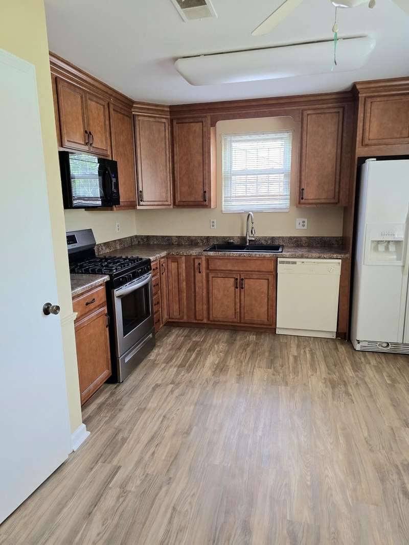 Charming Updated Ranch on Nearly Half an Acre. Welcome to this beautifully refreshed 3-bedroom, 2-bathroom with a large flex room, ranch home situated on a spacious .43-acre lot. Freshly painted and move-in ready, this home features new LVP flooring throughout the main living areas and brand-new carpet in the bedrooms for a cozy, comfortable feel. The heart of the home is a large kitchen with like-new cabinets, a gas stove, and ample space for an eat-in dining area—perfect for family meals or casual gatherings. The owner's suite offers a peaceful retreat with an ensuite bath, featuring his-and-her closets for plenty of storage. Enjoy outdoor living in the flat, fully fenced backyard, ideal for pets, play, or entertaining. Don't miss your chance to own this well-maintained home with plenty of space, inside and out!