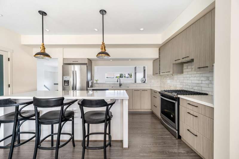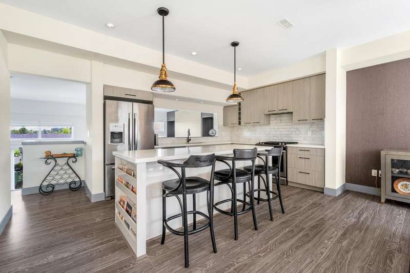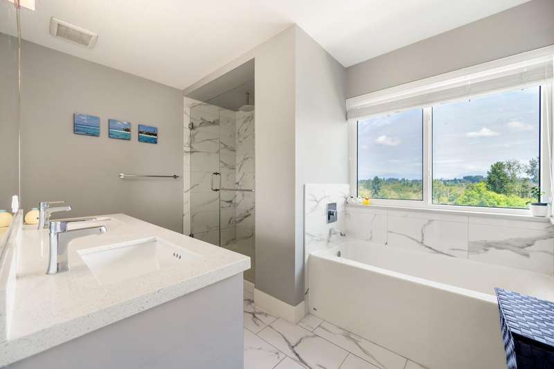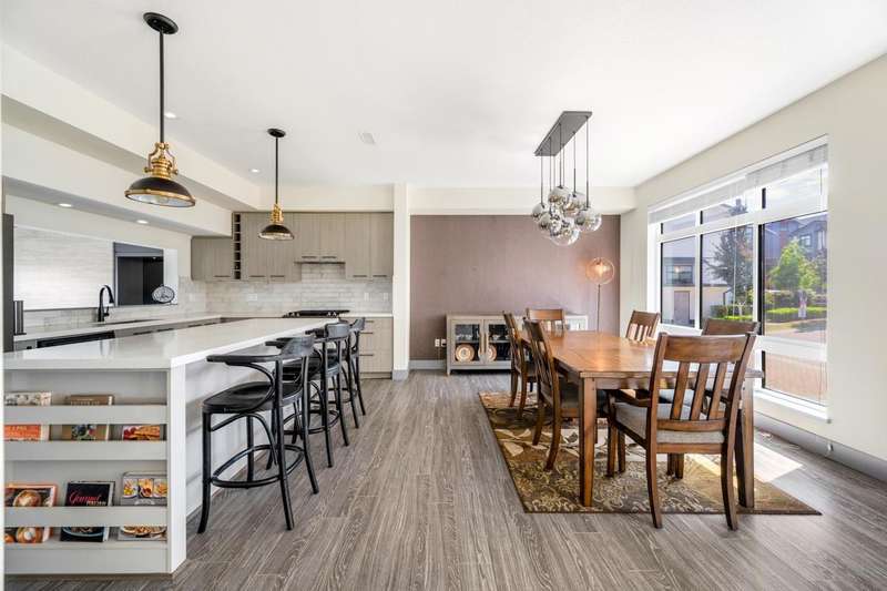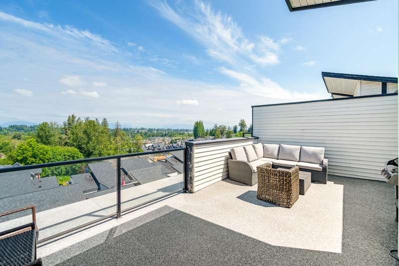 Welcome to Summit by Hayer at Sullivan Station, Surrey! This beautiful townhouse offers: Stunning Rooftop Patio: Enjoy an oversized rooftop patio with unobstructed mountain views | Double Car Garage: Convenient and secure parking | Open-Concept Main Floor: A unique, spacious layout with high ceilings, perfect for entertaining and family life | Gourmet Kitchen: A chef-inspired kitchen featuring stainless steel appliances, quartz counter top, a pantry, wine fridge, and a large kitchen island |Comfort & Style: Equipped with air conditioning and meticulously maintained, this home is spotlessly clean and ready for you to move in. | 3 outdoor space: balcony, back yard, roof top. (id:58403)