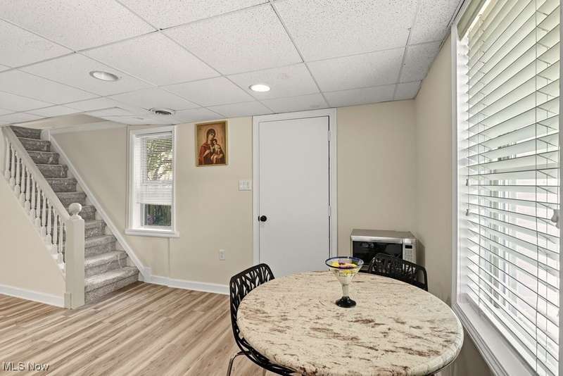 This historical home, formerly a church, offers exceptional versatility for business or residential use, suiting diverse needs. With four bedrooms and one-and-a-half bathrooms, it provides ample space for families or operations. A bright, ceramic-tiled foyer welcomes guests, leading to updated finishes throughout. The open-concept layout creates a spacious feel, while freshly painted walls and luxury vinyl tile (LVT) flooring add durability and style. Upstairs, new carpeting enhances comfort in three private bedrooms. The lower level features an updated kitchen with stainless steel appliances, granite countertops, LVT flooring, and modern cabinets. Adjacent is a flexible room?ideal as an office, extra bedroom, or storage?finished with ceramic tile. Another bedroom on this level boasts ceramic tile and a walk-in closet. Both bathrooms have updated fixtures and ceramic tile floors. The walk-out basement opens to a fenced courtyard and yard, providing privacy for relaxation or entertaining. Additional features include a one-car detached garage and a spacious loft above, perfect for workspace or storage. Conveniently located near Cleveland Hopkins Airport, Fairview Hospital, Rocky River Reservation, shopping, and restaurants, this unique property offers easy access to key amenities. Schedule your showing today!