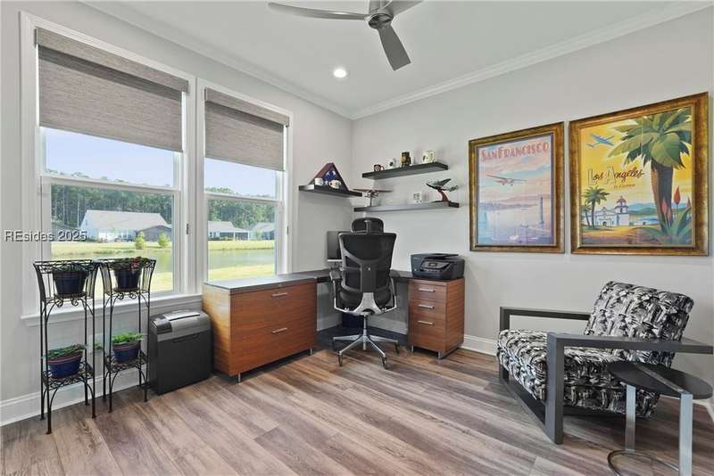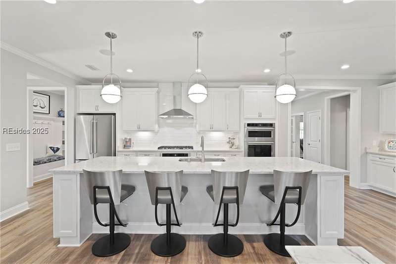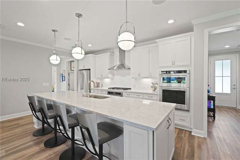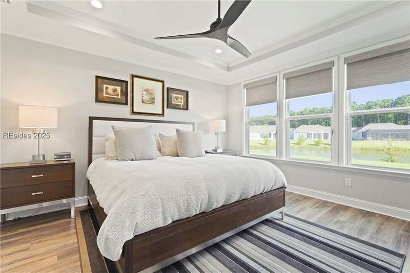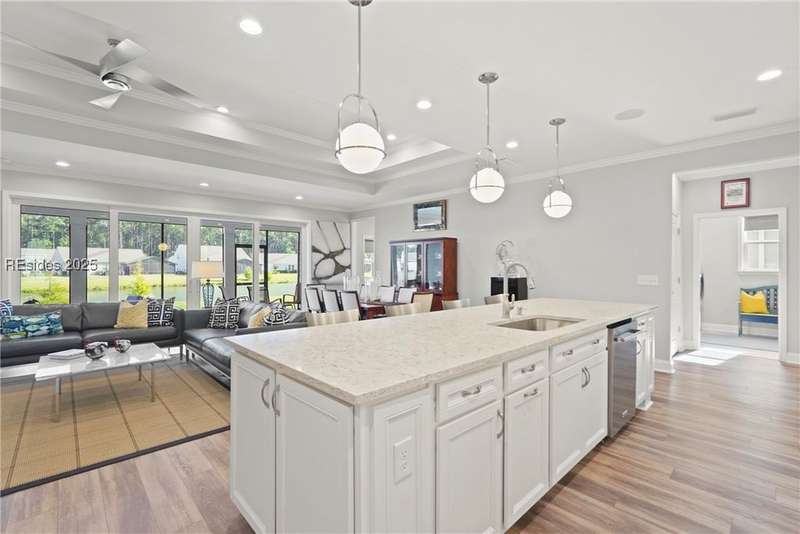 Welcome to this stunning 3BD/2.5BA Stardom model perfectly positioned on a serene lagoon w/a fabulous outdoor living space in Sun City! The gourmet kitchen is a chef's delight featuring quartz countertops, 5-burner gas range, double ovens, roll-out shelving, spacious pantry, under cabinet lighting & beverage center w/wine rack & wine refrigerator. The home showcases LVP flooring throughout, drop zone, 3 car garage, epoxy floors on the covered front porch/lanai/garage & a laundry room w/custom desk & storage. Enjoy the fabulous outdoor living space that includes double sliding doors to a screened lanai & a covered front porch! This home is a must see!