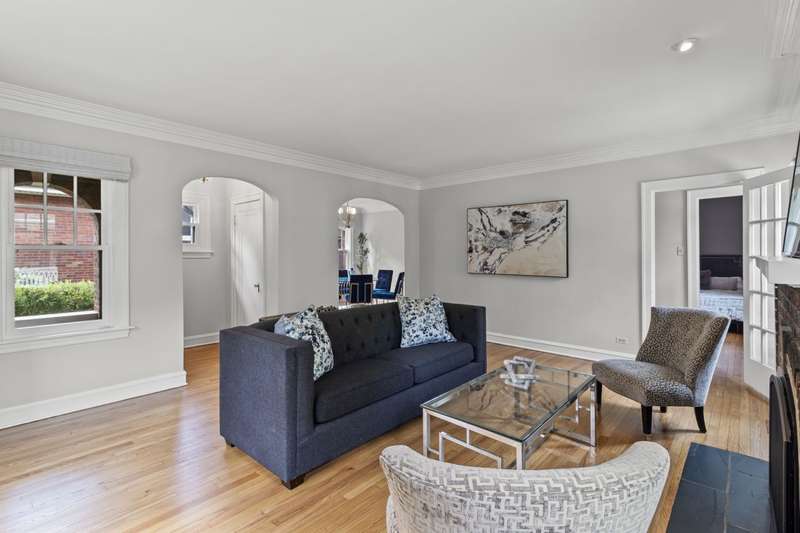 Welcome to 809 N Marion, a captivating Brick English-style residence nestled in the heart of Oak Park. This enchanting home, boasting four well-appointed bedrooms and two modern bathrooms, offers a harmonious blend of classic charm and contemporary updates. As you enter through the front door, the warmth of the freshly refinished floors invites you into a space where each room tells a story of elegance and comfort. The living room, anchored by a stately fireplace, becomes a cozy haven on chilly evenings, with the crackling fire casting a gentle glow on the walls, freshly painted in soothing hues. The heart of the home, the kitchen, is a culinary dream with its sleek, updated appliances, where the aroma of home-cooked meals fills the air, enticing conversations and laughter. The adjacent dining area, bathed in natural light, is the perfect backdrop for intimate dinners or festive gatherings. Retreat to the serenity of the bedrooms, each a private oasis designed for rest and rejuvenation. The bathrooms, recently remodeled, feature modern fixtures and finishes, creating a spa-like atmosphere that soothes the senses. Descend to the basement, where an indulgent sauna awaits. Here, you can unwind and let the day's stresses melt away in your personal wellness sanctuary. Take a break outside in the private fenced yard, a verdant retreat that has been meticulously landscaped. This outdoor sanctuary is ideal for garden parties, summer barbecues, or simply enjoying the tranquility of your surroundings. This home is not just a dwelling but a lifestyle. Located just a few blocks from vibrant downtown Oak Park, you have an array of restaurants, shops, and cultural experiences at your fingertips. Commuting is a breeze with easy access to trains and transportation, and the prestigious Mann School offers exceptional educational opportunities. In the past seven years, this home has been lovingly updated, ensuring that it is ready for you to create new memories. From the new roof overhead to the solid foundation underneath, every detail has been attended to with care. Experience the perfect blend of historic allure and modern living. Your dream home awaits.