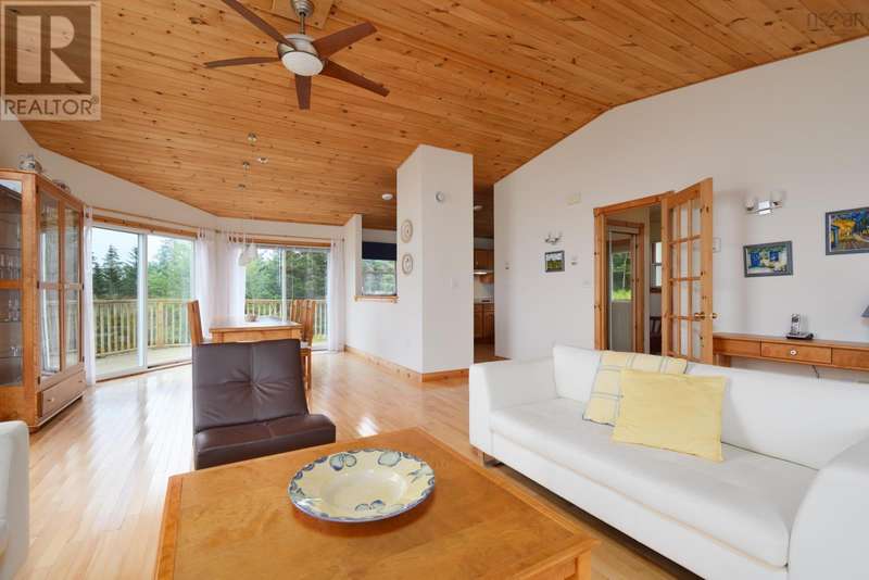 Welcome to your Cape Breton retreat with deeded access to the sparkling waters of the Bras d'Or Lake! This beautifully crafted 3-bedroom, 2-bath home combines comfort, quality, and charm - complete with captivating lake views and just steps from a quiet gravel beach. Thoughtfully designed and fully furnished, the home features a warm and inviting fireplace on the main level, a wraparound patio, and a lower deck perfect for outdoor gatherings. The finished walk-out basement expands the living space to a generous 1,610 sq. ft., ideal for family or guests. A detached garage comes equipped with a kayak and all the essentials for making the most of your waterfront lifestyle. Inside, artisan-made furniture adds local character, while floor-to-ceiling built-in shelving enhances both style and function. All that's left to do is bring your toothbrush and settle in. Experience the natural beauty and relaxed pace of Cape Breton Island living with this exceptional property. (id:2494)