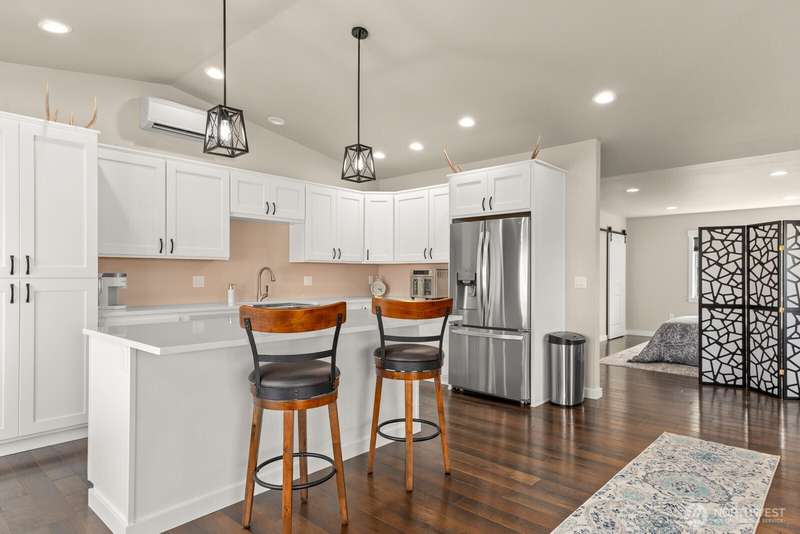Stunning home in highly desirable area of Bay View. The main floor of this like new home features oversized kitchen, pantry, living room, gas fireplace, half bath, office with double doors as well as a very cute utility room. Upper level boasts 4 bedrooms, 2 full baths and a bonus room! Master bedroom with 5 piece en-suite with large walk-in closet. Home sits on nearly an acre with a 52x42 shop, 14 ft doors and aggerate concrete entrance. Above the shop is a 900 sqft living space with stylish finishes. This apartment is 1 bed/1 bath, kitchen with island, quartz counters and a living room. Outside you will find a patio with stamped concrete perfect for entertaining. Home backs up to treed land for privacy. You won't be disappointed!