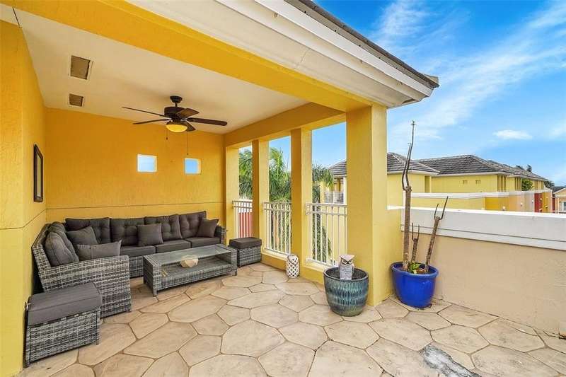 3-BEDROOM, 3.5-BATHROOM TOWNHOUSE WITH ROOFTOP TERRACE! THIS SPACIOUS HOME OFFERS A FLEXIBLE FIRST-FLOOR BEDROOM, CURRENTLY AN OFFICE BUT EASILY CONVERTIBLE TO A BEDROOM. FULL BATH ON 1st FLOOR. THE 2nd BEDROOM FEATURES A BUILT-IN MURPHY BED AND CUSTOM WALL UNIT, OPTIMIZING SPACE. ALSO INCLUDES A FULL BATH. THE MASTER BEDROOM HAS A LARGE WALK-IN CLOSET FOR ADDED CONVENIENCE. THE OPEN LIVING AND KITCHEN AREAS ARE GREAT FOR ENTERTAINING. THE OVERSIZED GARAGE COMFORTABLY FITS TWO LARGE VEHICLES. TRUCKS AND MOTORCYCLES ALLOWED. VAULTED CEILINGS AND IMPACT-RESISTANT WINDOWS. SITUATED IN A WELL-MAINTAINED, PET-FRIENDLY, GATED COMMUNITY. FANTASTIC AMENITIES, INCLUDING A HEATED POOL, AND JACUZZI. BEAUTIFUL BEACHES, TRENDY RESTAURANTS, AND SHOPPING JUST MOMENTS AWAY.