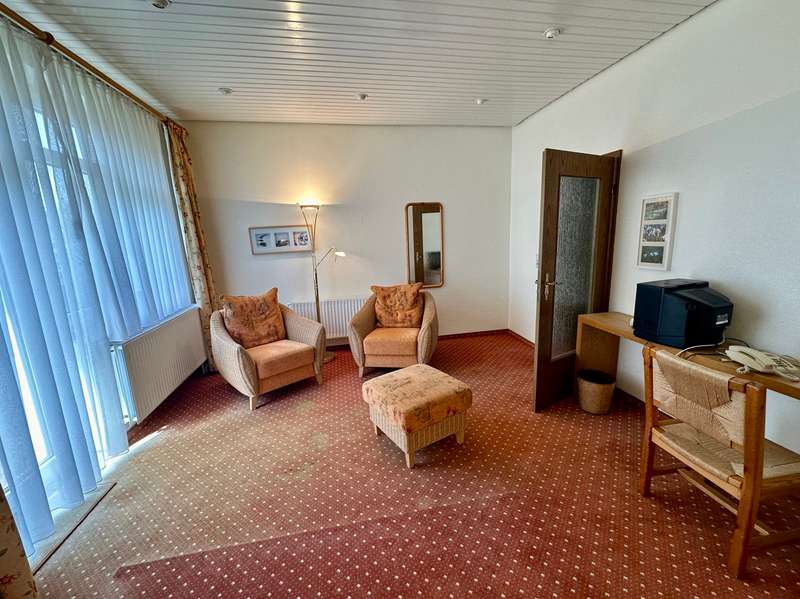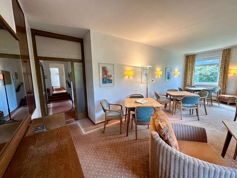This charming property, originally built around 1910/1915 as a sanatorium, was extended and remodeled several times in 1966, 1979 and 1987. It offers 12 rooms, each with its own bathroom, a spacious dining room, a kitchen, adjoining rooms and a cozy library. The approximately 1,600 m² landscaped grounds with a pool invite you to relax. Since 2017, the property has no longer been used as a sanatorium and now offers a wide range of possible uses. We can only provide you with a selection of photos in the exposé. Further information is available on request or at a viewing appointment. We also offer you the option of a 360° viewing. We would be happy to provide you with more information in a personal meeting or at a viewing appointment.