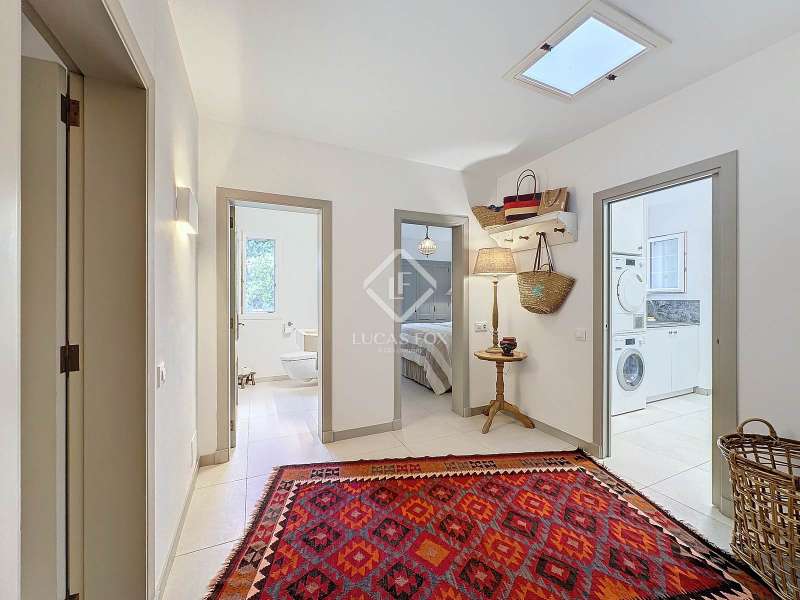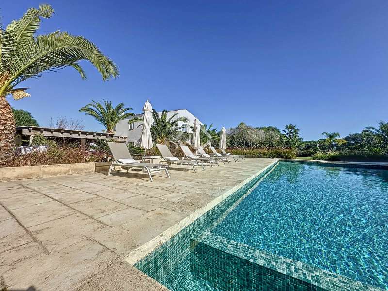Lucas Fox presents this magnificent 500 m² country house on a 18,000 m² plot that offers great privacy, although it is only a few minutes walk from the charming village of Sant Lluís. This two-storey house stands out for its elegant design and spacious interiors, perfect for enjoying with family or friends. The property has several cosy living rooms and a large, fully-equipped kitchen, as well as generous communal areas. It has four large bedrooms, all with private bathroom. The two bedrooms located on the upper floor offer dressing rooms and bright spaces, as well as access to private terraces where you can relax and enjoy the views. Every corner of this property has the highest quality finishes and materials, to offer the modern comforts necessary for everyday life, such as air conditioning and heating. The exterior of the property is simply spectacular. It enjoys several terraces, an elegant swimming pool accompanied by an exterior bar, ideal for entertaining, and a large covered area to enjoy the outdoors in any season. The gardens, adorned with majestic trees and lush plants, are in perfect condition. In addition, the property has a large covered parking area. It also has a well water supply, which adds extra value to this exceptional building. Don't miss the opportunity to purchase this property, to live in all year round or spend time with family and/or friends. Contact us for more information or to arrange a visit.