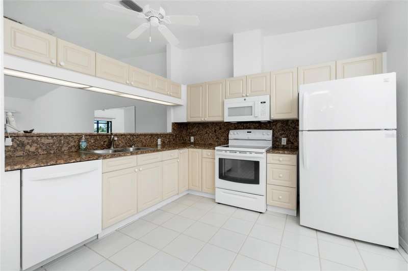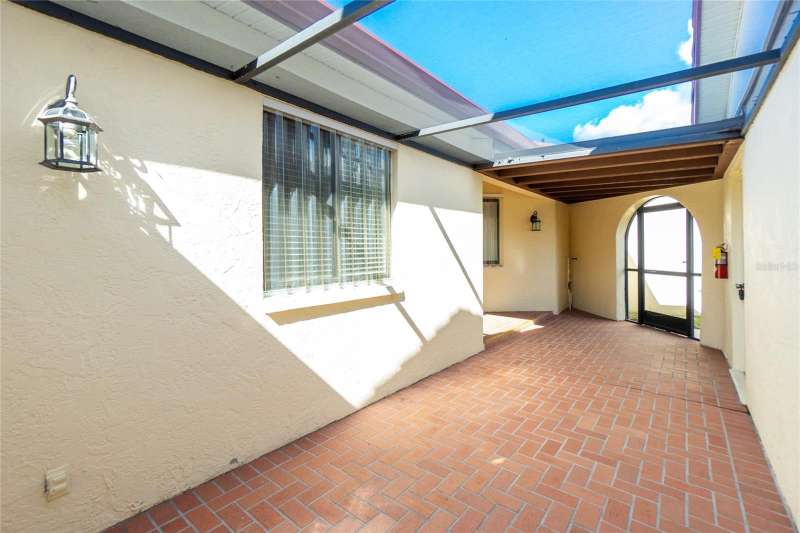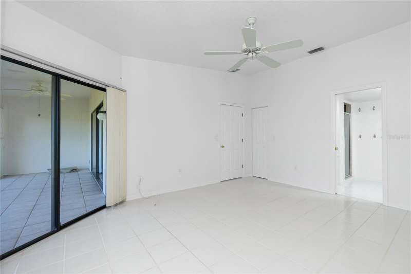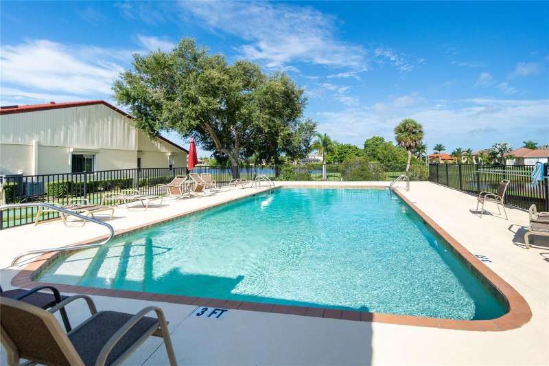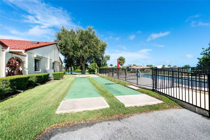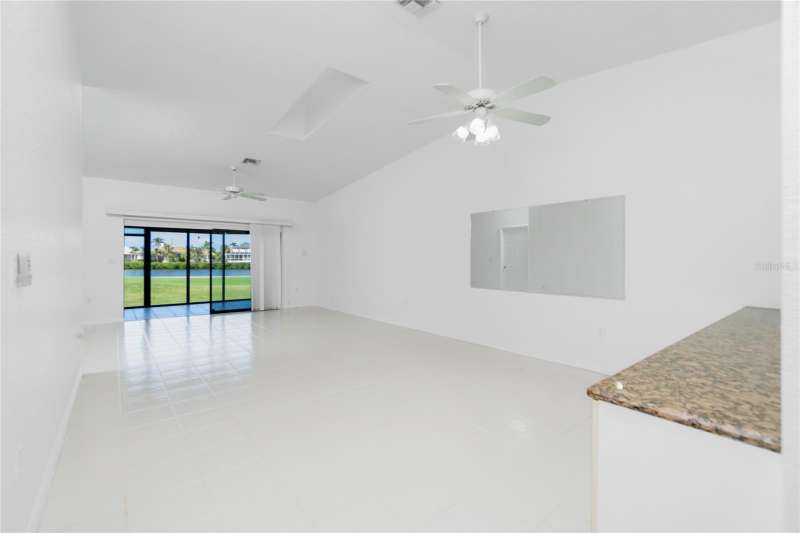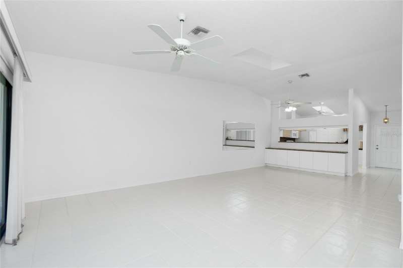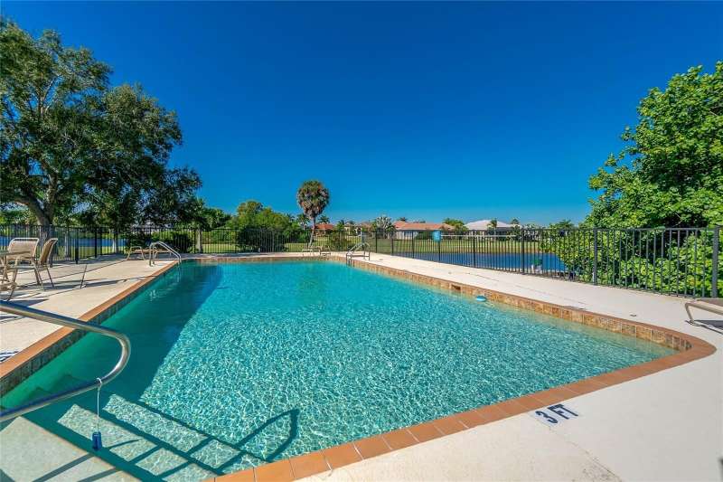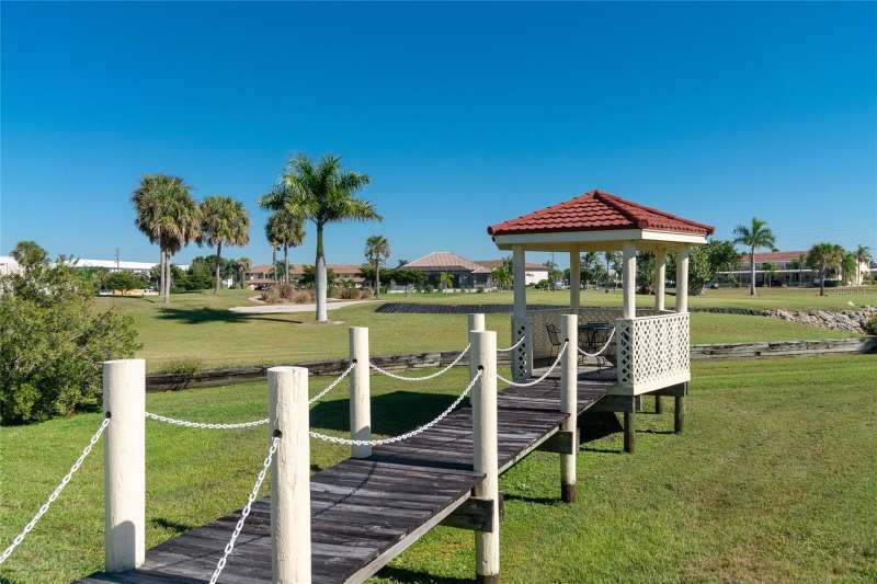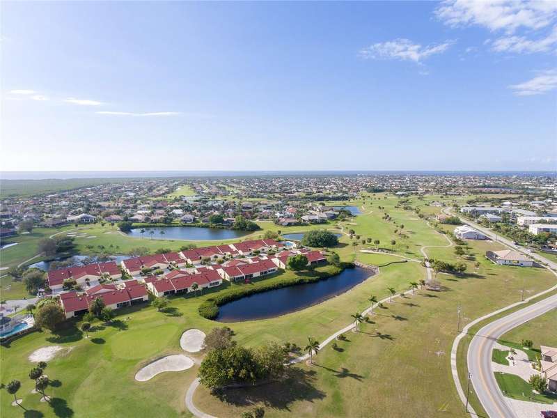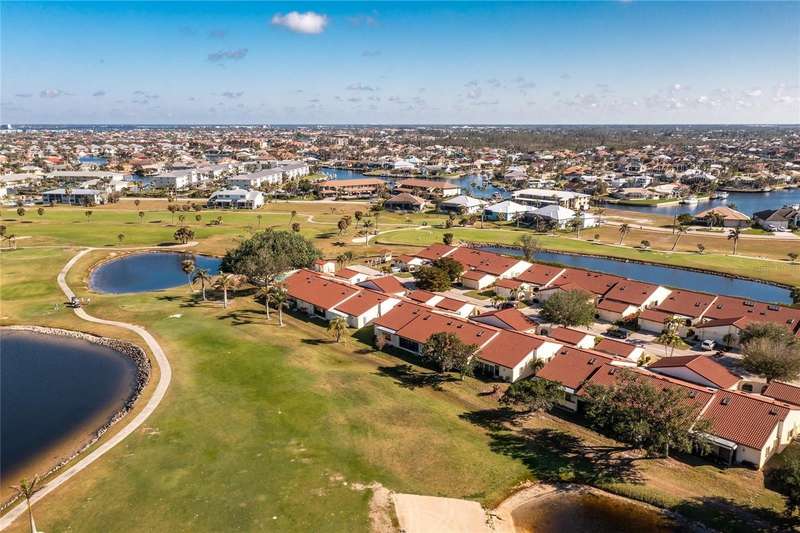 Under contract-accepting backup offers. WOW!! Is what you will say when you see this beautiful Punta Gorda Isles Golf Course Villa for only $189,900 and monthly fees of only $660! This Villa has never experienced any interior damage or flooding in any past hurricanes, and the seller is an original owner. It is a spacious 2 bedroom plus a large den/bonus room, 2 bathrooms, 2 lanais and a 2-car garage. The back lanai has a wonderful southwest exposure overlooking the lovely lake, St Andrews Golf Course (with available memberships) and incredible sunsets! It also has Glass Sliders for the cool winter days and accordion hurricane shutters on the exterior. The front screened Porch-Patio is nice and private with brick paver flooring; this would be a great spot for the large Grille and another seating or even a hot tub! The interior has an all-white tile floor that would go with any decor. The kitchen has granite counters, white appliances with built in microwave, flat top stove and large refrigerator with an icemaker. There is also room for a breakfast nook! The closet in the kitchen houses the washer, dryer, hot water heater and some storage. The large great room shares the lovely view off the Lanai as well. It also has cathedral ceilings with 7 skylights throughout and built in cabinets for your dining area! The primary bedroom has 2 walk-in closets with the larger having been upgraded with a California closet design style. Both baths have granite counters. The 15X11 bonus room/den-study is such an added bonus and includes a large skylight to make it light and bright. Golf Course Villas (the name of the condominium) has a large pool, shuffleboard courts and a quaint gazebo for all to share. New Metal Roofs installed in 2024 with the $9,650 Assessment paid in full. All exterior buildings have been painted in 2025, and the private road has been repaved in February 2025. Great time to be buying in this well maintained complex and enjoy living the good life Punta Gorda has to offer! Great neighbors are an added bonus! Call today to see as this won't last long!