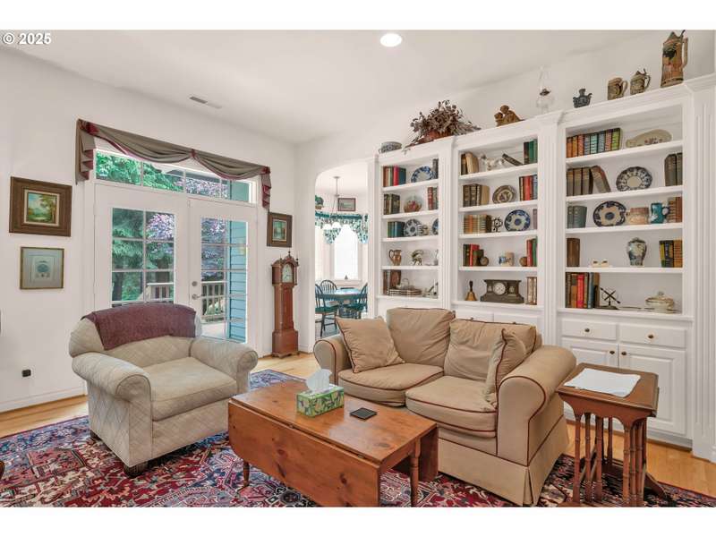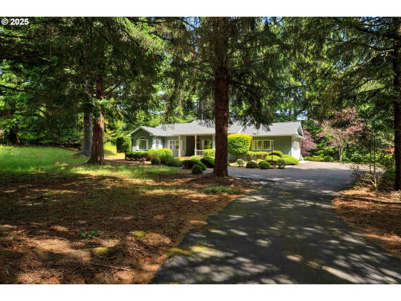 Experience the perfect blend of elegance and comfort in this stunning 2,005 sq. ft. single-level custom ranch-style home. Gorgeous wood floors and soaring 10-foot ceilings flow throughout, creating a warm and open atmosphere.The spacious living room features beautiful built-in bookcases, a cozy fireplace, and dual French doors—one set opening to the hallway and the other to the expansive wraparound deck. The dream kitchen is a chef’s delight, complete with a cook island, double ovens, breakfast bar, and a charming breakfast nook.A dedicated den provides the ideal office or creative space, while the generous primary suite includes a walk-in closet and a luxurious bath with jetted tub, separate shower, and dual sinks. A second bedroom offers a comfortable space for guests, and the separate laundry room includes a convenient half bath.Enjoy outdoor living on the covered front porch or expansive wraparound deck, all surrounded by beautifully landscaped grounds. The 2-acre property also features a versatile workshop/barn, perfect for storage, hobbies, or even small livestock.This is more than a home—it’s a dream come true.