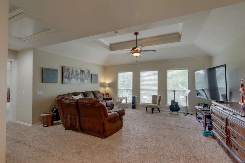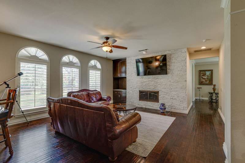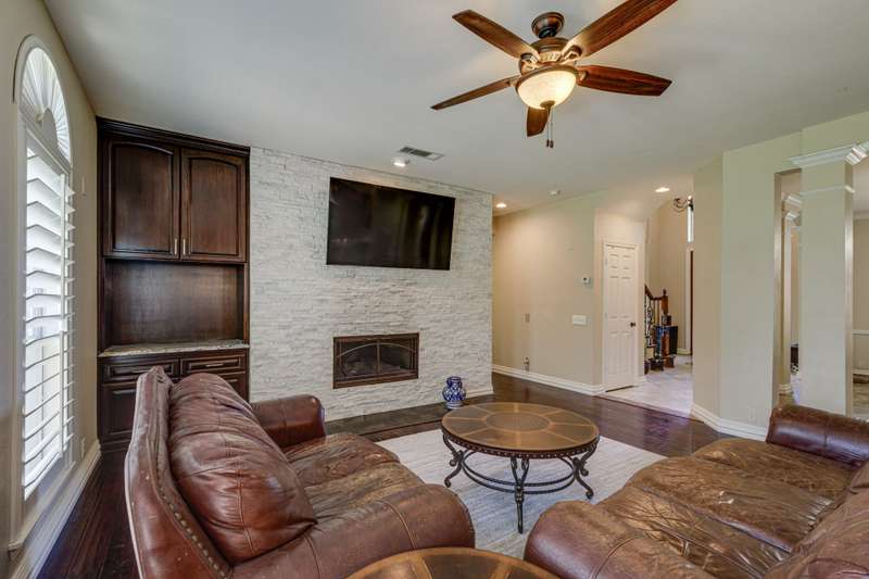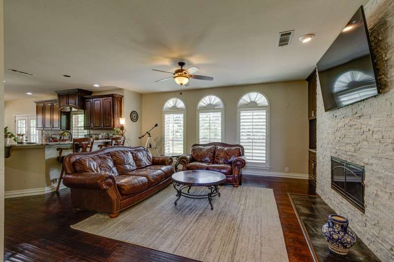 Welcome to 1 Foxborough, beautifully positioned on a generous 0.49-acre corner lot in the prestigious Highlands of Heath. This thoughtfully designed 4-bedroom, 3.5-bath home features a spacious 3-car garage with an extended driveway, offering additional parking for family and guests alike. As you enter through the stately front doors, youre greeted by a grand, light-filled entry that sets the tone for the rest of this impressive home. The interior showcases custom cabinetry in both the kitchen and bathrooms, luxurious granite countertops, and plantation shutters throughout.The open-concept living space, with its floor-to-ceiling stone-accented fireplace and large dining areas, flows seamlessly, perfect for both entertaining and everyday living. Double French doors lead you outside to a peaceful backyard oasis where you can relax under the covered patio, enjoy the extended stamped concrete space for gatherings, or watch the kids and pets play under mature shade trees. A dedicated dog run adds extra convenience for pet lovers or garden enthusiasts, as used today, while the beautifully landscaped yard provides plenty of room to unwind.Whether youre hosting summer barbecues, enjoying a quiet morning coffee, or catching magnificent sunsets, this backyard retreat offers a lifestyle of comfort and ease. The Highlands of Heath community is known for its charm, sense of community, and convenient location close to RISD top-rated schools, shopping, and dining.