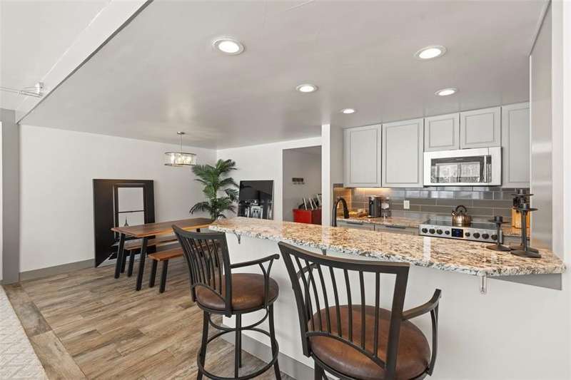 Stunning Remodeled 2-Bedroom Condo in Keystone – Short-Term Rentals Allowed! This fully remodeled 2-bedroom, 2-bath condo in Decatur Condos offers the ultimate Keystone mountain getaway with breathtaking mountain views and unbeatable access to all-season activities. Ideally located near Keystone Lake, ski lifts, restaurants, and on the resort shuttle route, this condo is perfect for both adventure and relaxation. The spacious, open-concept living area is ideal for entertaining after a day on the slopes or trails. The primary suite features an oversized closet, additional storage, a private laundry closet, and a beautifully updated en-suite bath with a double vanity and walk-in shower. The versatile second bedroom easily accommodates bunk beds, desks, or guest accommodations—ideal for families, guests, or remote work. Enjoy hassle-free ownership with underground parking, a dedicated ski locker, and access to luxury amenities including an indoor pool and hot tub. Whether you're searching for a full-time residence, vacation home, or income-producing short-term rental property, this Keystone condo is a rare find in a high-demand area where short-term rentals are permitted.