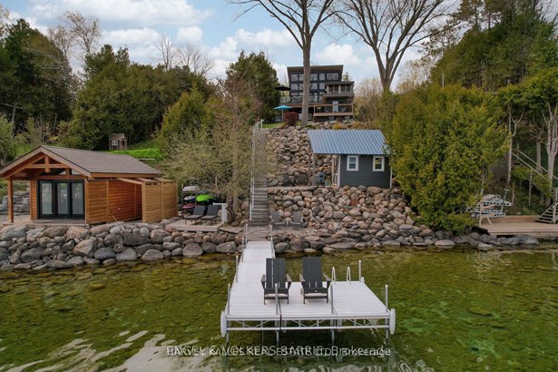 Exceptional Waterfront Retreat on Lake Simcoe! This beautifully renovated home offers 50 feet of prime Lake Simcoe frontage in one of the areas most sought-after locations. With panoramic lake views and a thoughtfully designed layout, this property perfectly blends luxury and relaxation.The main home features a stunning open-concept design with cathedral ceilings and a seamless flow from the living space to the Muskoka room, complete with a cozy fireplace and walkout to a private deck overlooking the lake. The primary bedroom boasts a spa-like ensuite and walk-in closet, offering a serene escape. A separate guest suite ensures privacy and comfort for family and friends.The lower level presents breathtaking lake views, a family sitting room, and double walkouts, enhancing the connection to lakeside living. Outside, youll find a detached bunkie for additional accommodation and a waterside storage shed, versatile for all your waterfront needs.Located just minutes from Highway 400, this property is conveniently nestled between Barrie and Orillia, offering easy access to shopping, dining, and entertainment. Situated in a popular waterfront community, this home is a rare gem for year-round living or weekend escapes! Don't miss your chance to own this slice of paradise! (id:6370)