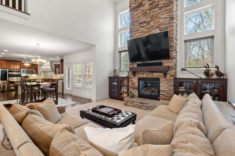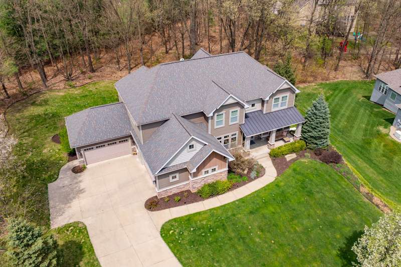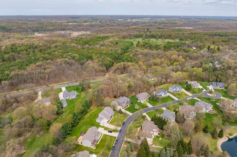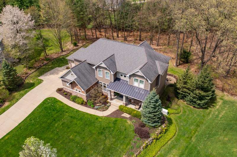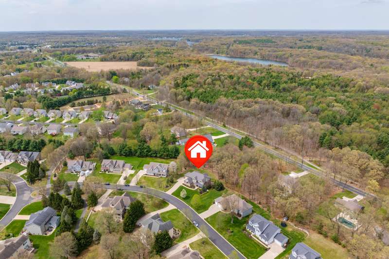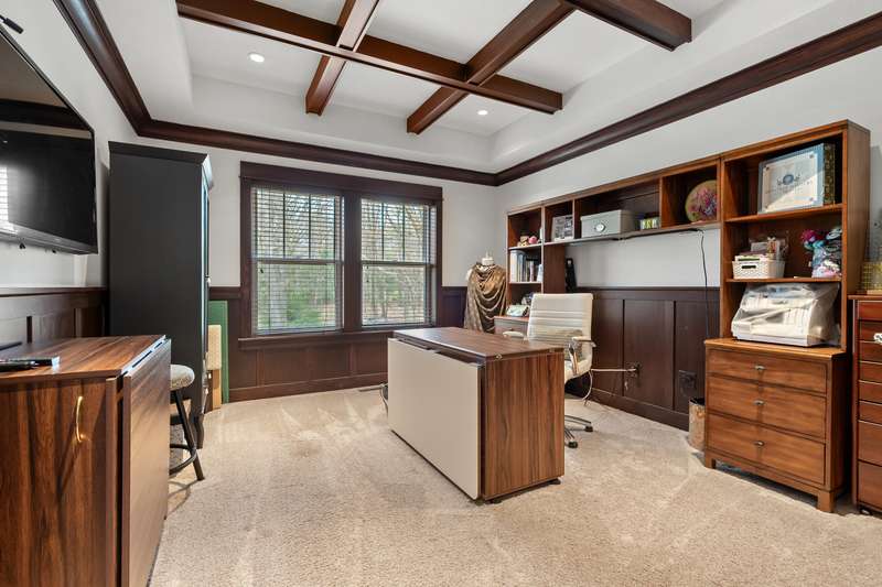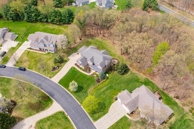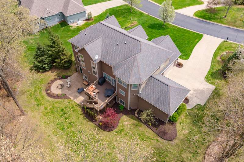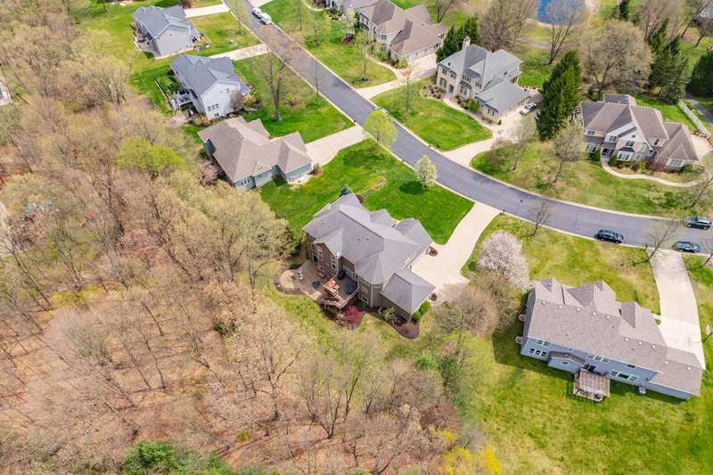 Custom built SMART home. Control everything right from your phone. Automatic 24kw Generac whole house GENERATOR and surge protection. Beautifully maintained w/ many upgrades Formal dining w/crown molding & wainscoating. Bar area w/ wine fridge.Office w/coffered ceiling. Large family room w/ hearth gas fireplace 2 story coffered ceiling w/ beams. Open to eating area & kitchen. Gourmet kitchen w/ cherry cabinets & island featuring off white cabinets, quartz counters.Large pantry, mud room & coat room access. 2 stairways going to 2nd level. Amazing primary suite w/ tray ceiling walk in closet and bathroom featuring double sinks, tub, shower. 3 other large bedrooms 2 full baths. Lower level walk out w/theater room, 2nd fireplace, possible multigenerational living space with bar, kitchen, dining area, gym w/cushioned floor. 4 CAR Garage. Private wooded backyard. Neighborhood pool walking trails, adjacwnt Texas Dr park, Woolam Nature preserve w/ swimming lake & Al Sabo Park.