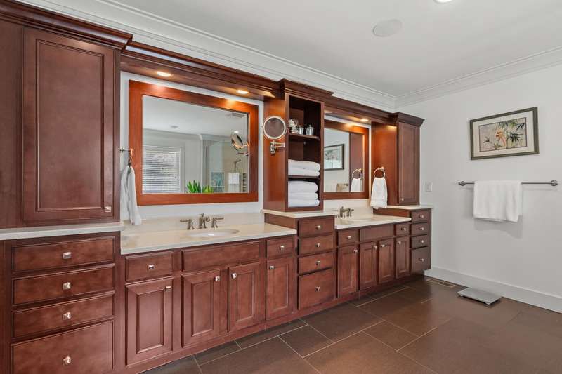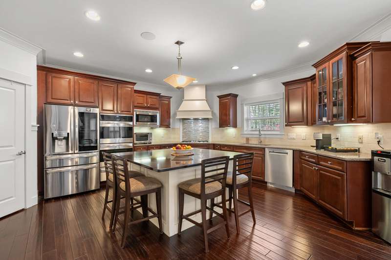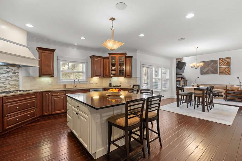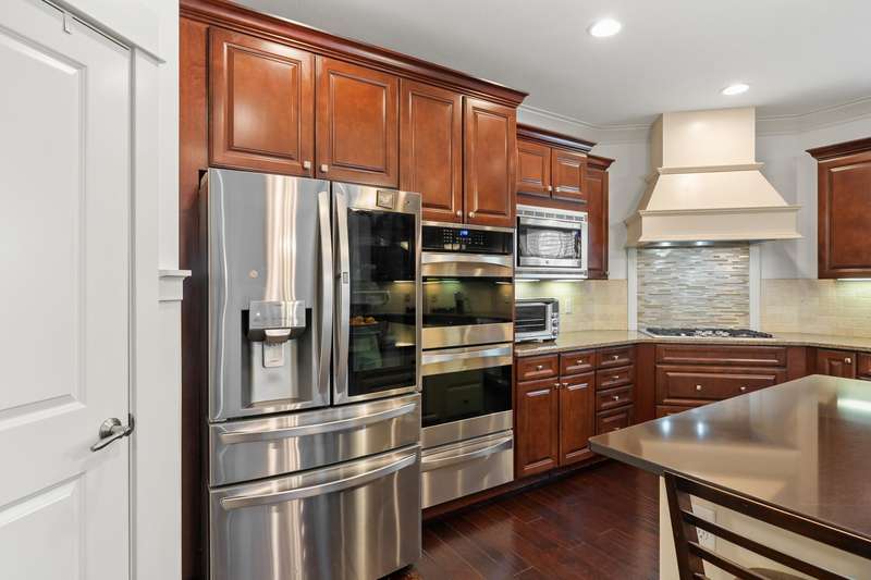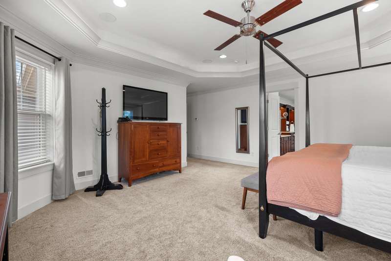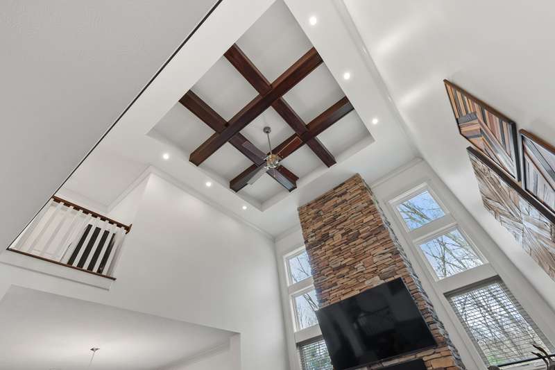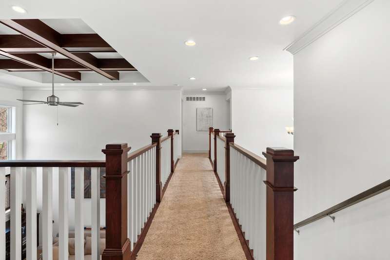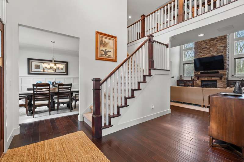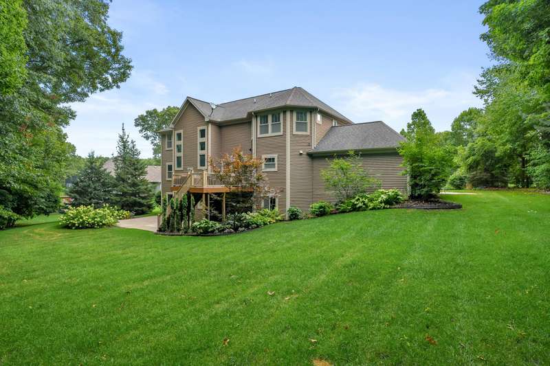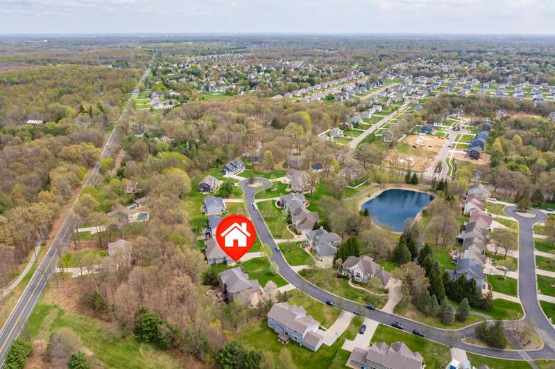 Custom built SMART home. Control everything right from your phone. Automatic 24kw Generac whole house GENERATOR and surge protection. Beautifully maintained w/ many upgrades Formal dining w/crown molding & wainscoating. Bar area w/ wine fridge.Office w/coffered ceiling. Large family room w/ hearth gas fireplace 2 story coffered ceiling w/ beams. Open to eating area & kitchen. Gourmet kitchen w/ cherry cabinets & island featuring off white cabinets, quartz counters.Large pantry, mud room & coat room access. 2 stairways going to 2nd level. Amazing primary suite w/ tray ceiling walk in closet and bathroom featuring double sinks, tub, shower. 3 other large bedrooms 2 full baths. Lower level walk out w/theater room, 2nd fireplace, possible multigenerational living space with bar, kitchen, dining area, gym w/cushioned floor. 4 CAR Garage. Private wooded backyard. Neighborhood pool walking trails, adjacwnt Texas Dr park, Woolam Nature preserve w/ swimming lake & Al Sabo Park.