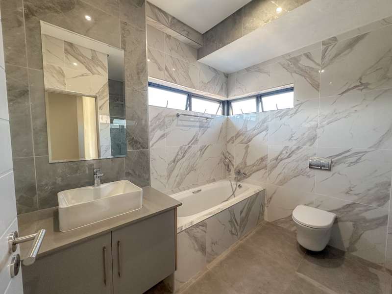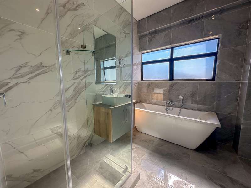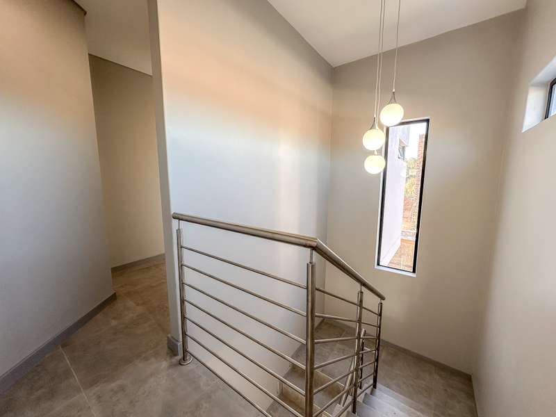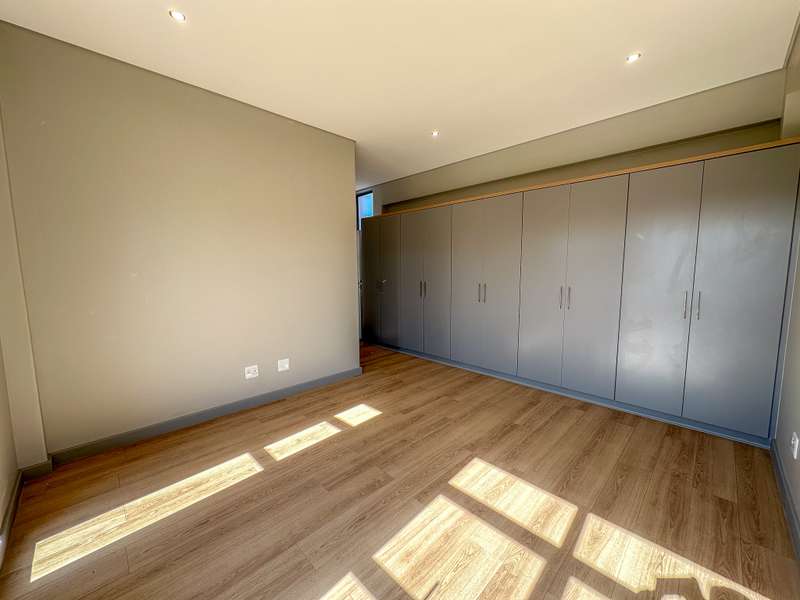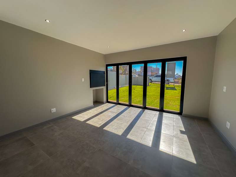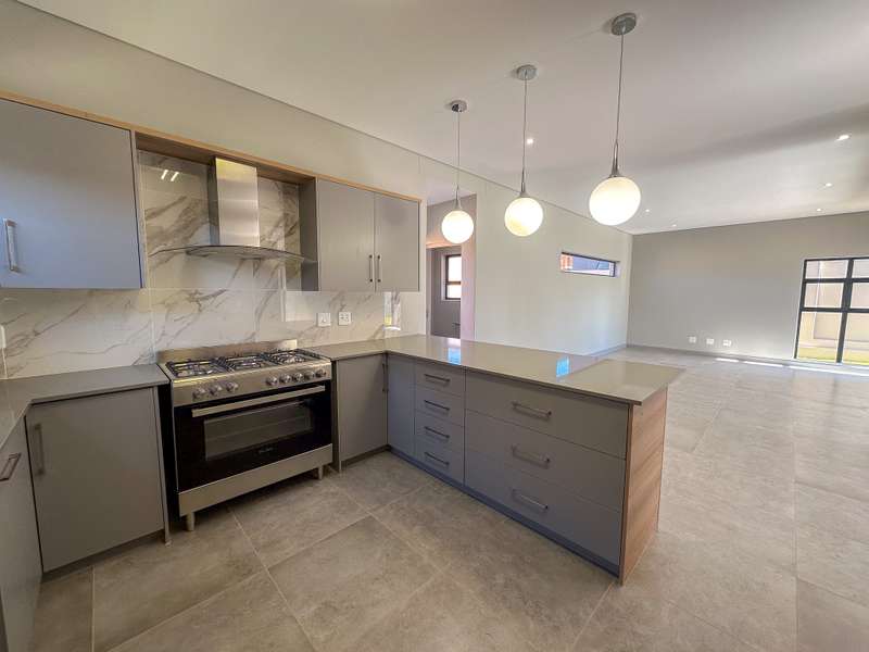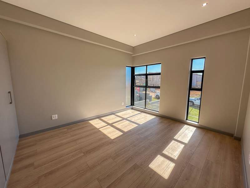 ON SHOW: Viewings by appointment Experience modern living at its finest in this brand-new double-storey home, ideally situated in the sought-after Fountainbrook Estate. Buy directly from the developer and enjoy significant savings on transfer duties. This contemporary residence offers spacious, light-filled interiors and a seamless indoor-outdoor flow — perfect for both relaxed family living and entertaining. Property Features: - Double automated garage with additional parking space for guests - Open-plan living areas that create effortless flow between the kitchen, dining, lounge, and enclosed patio - Stylish built-in braai with stacking doors opening onto a private garden, ideal for outdoor entertaining - Modern kitchen with quality finishes and ample workspace - Convenient guest toilet downstairs Upstairs: - Spacious main bedroom featuring generous cupboard space and a full en-suite bathroom - Two family bedrooms sharing a well-appointed family bathroom - Linen cupboard for added storage Fountainbrook Estate combines peace of mind, modern architecture, and easy access to local amenities, making this home the perfect choice for families or professionals seeking secure estate living. Pet-friendly: Up to two pets allowed dogs or cats (dogs must be no bigger than 30cm in height at maturity).